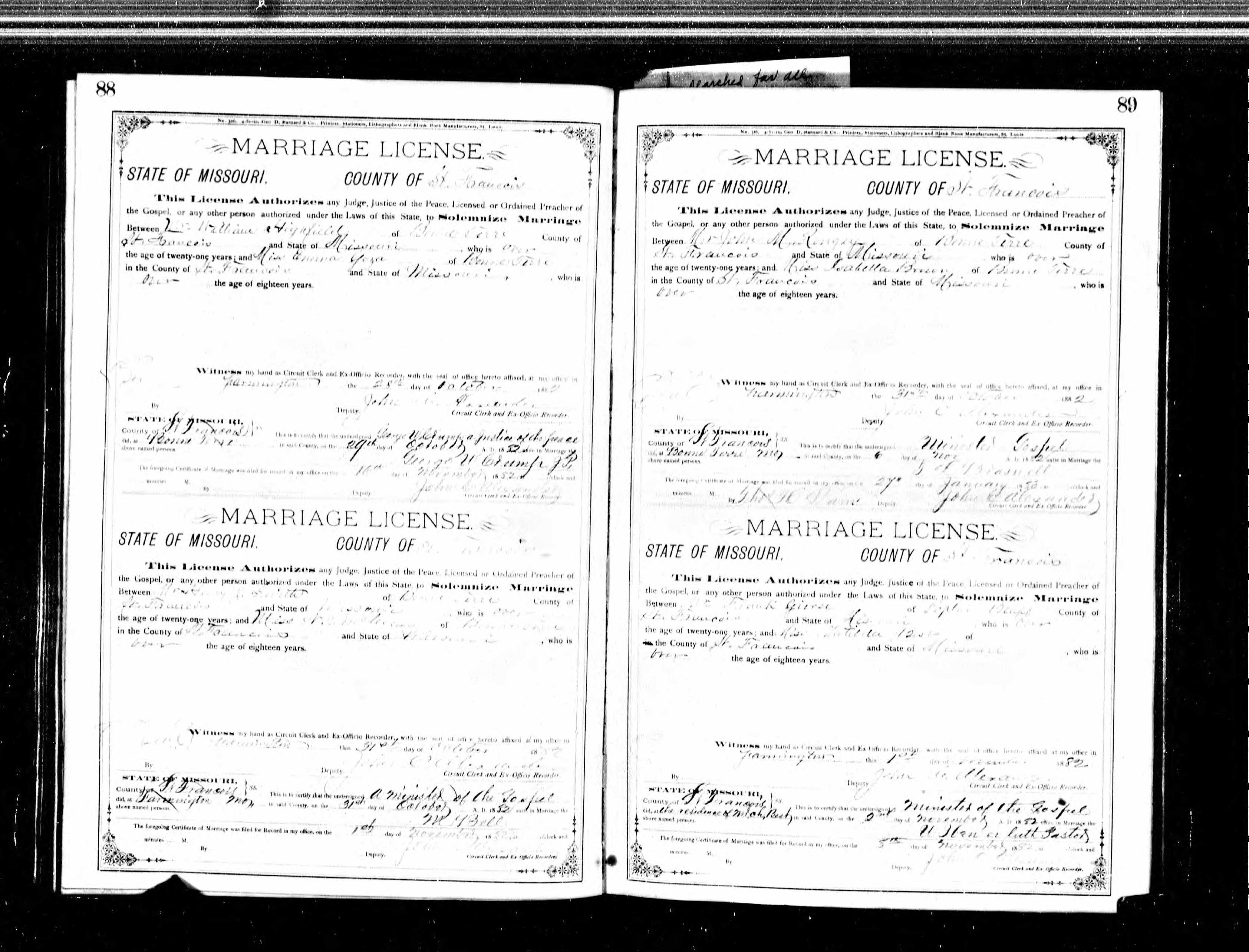 Missouri Marriage Record, Henry J. Smith and N. J. McCreary