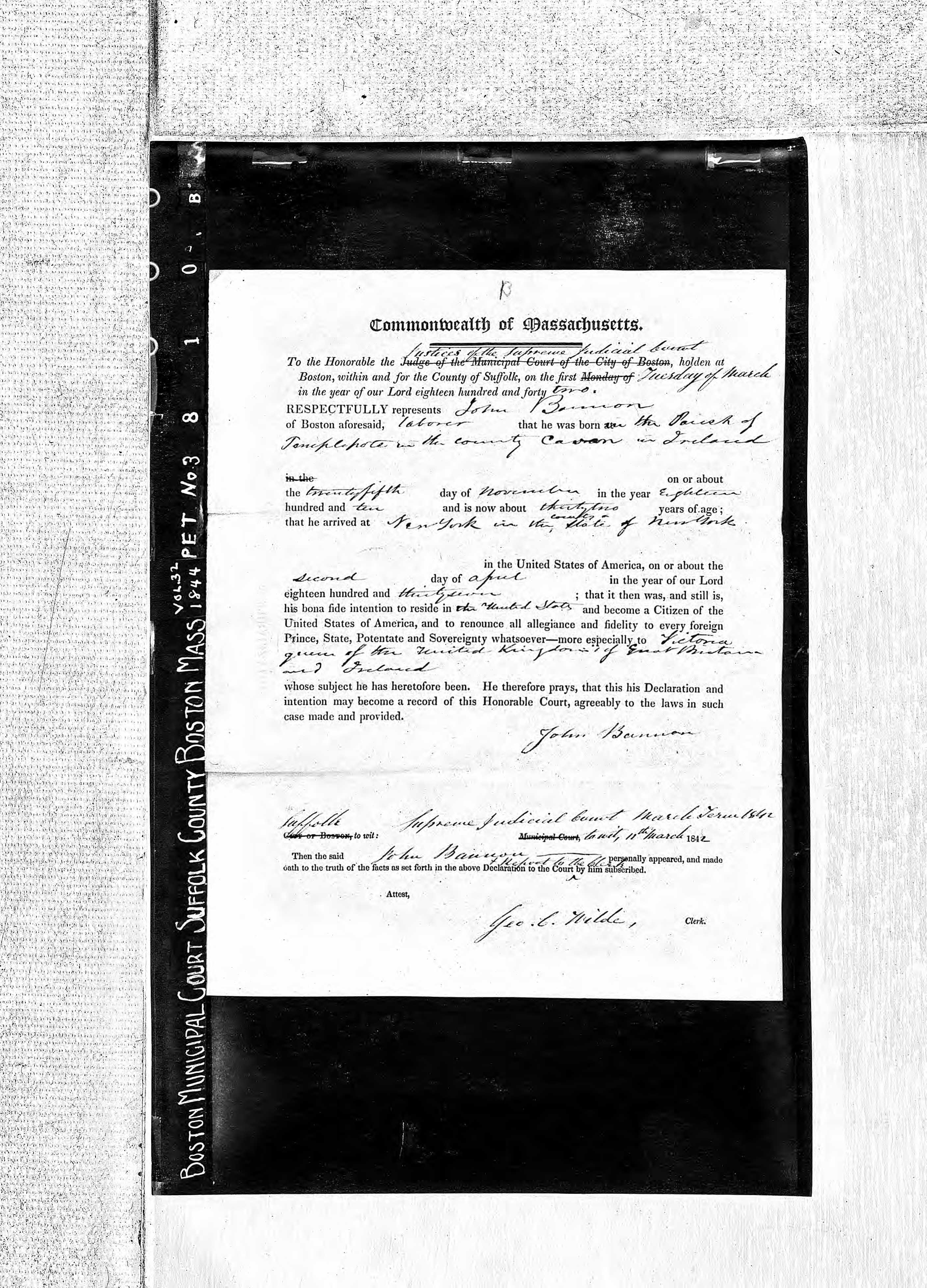 Massachusetts Naturalization Records, John Bannon