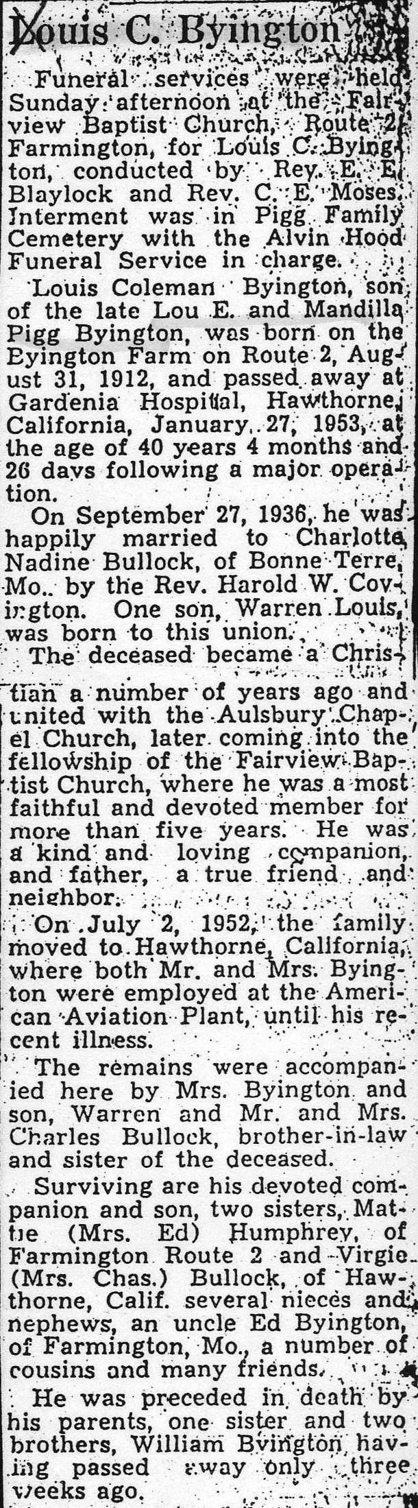 Obituary, Louis C. Byington