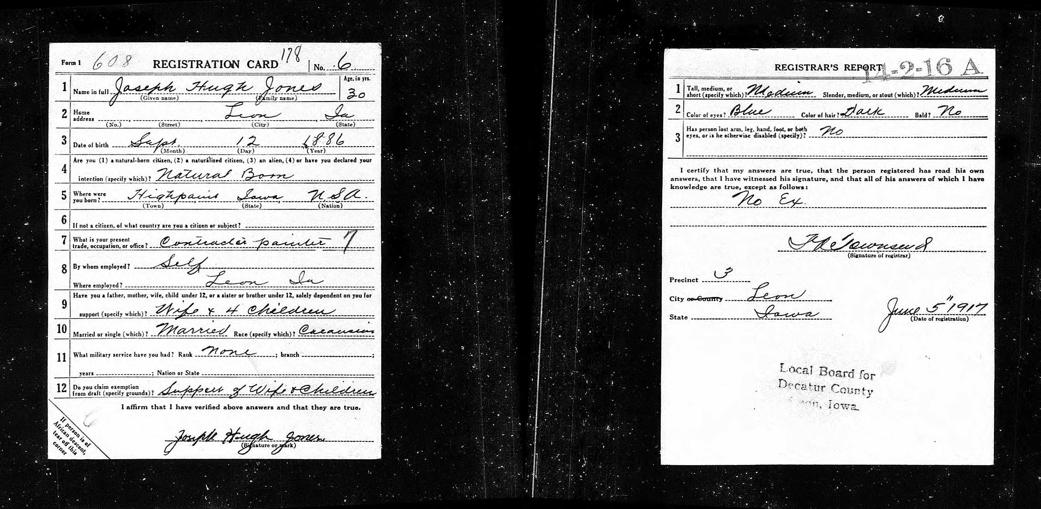 WWI Draft Registration, Joseph Hugh Jones