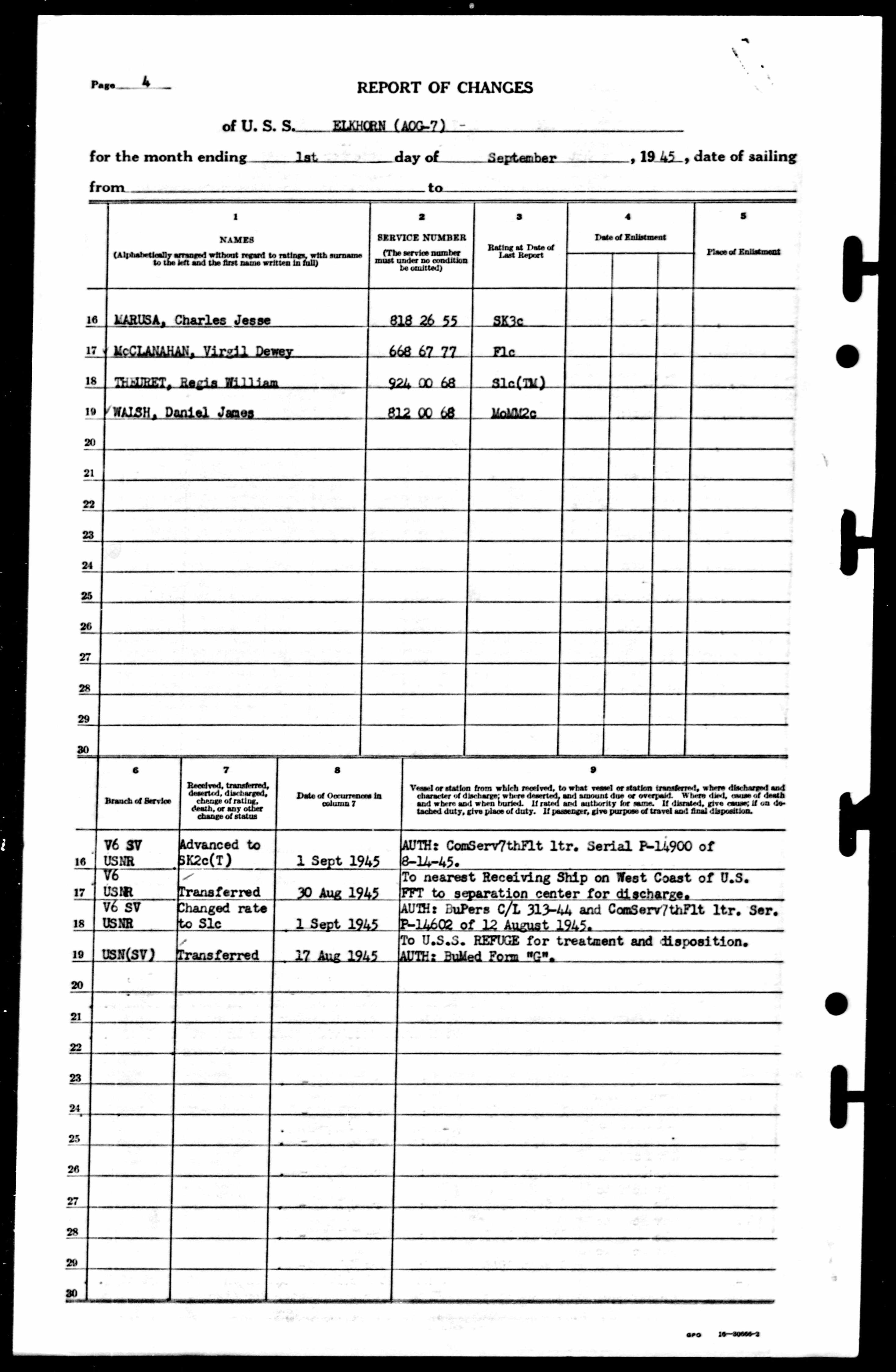 WWII Navy Muster Roll, Virgil Dewey McClanahan