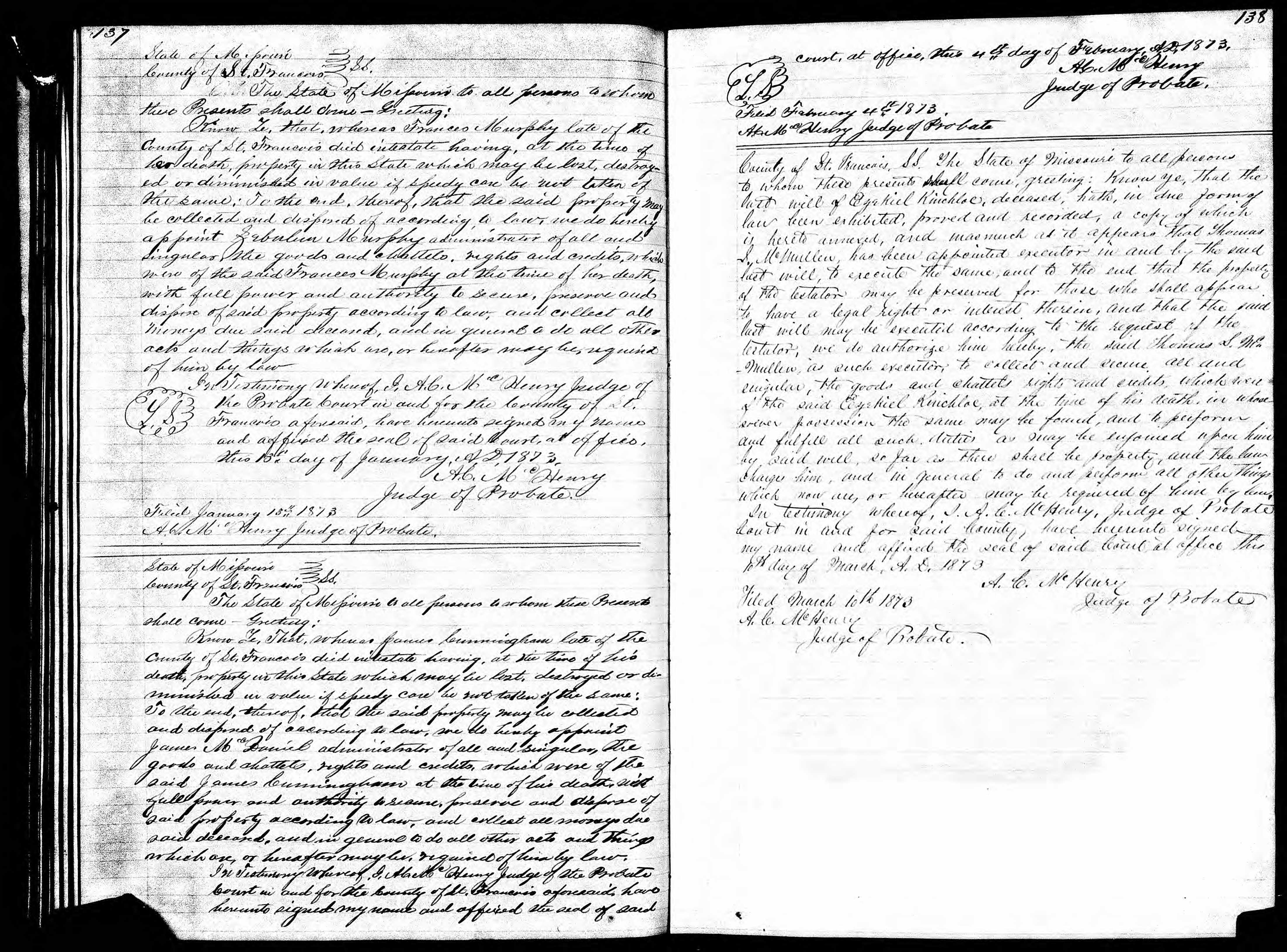 Missouri Will and Probate Record, James Cunningham