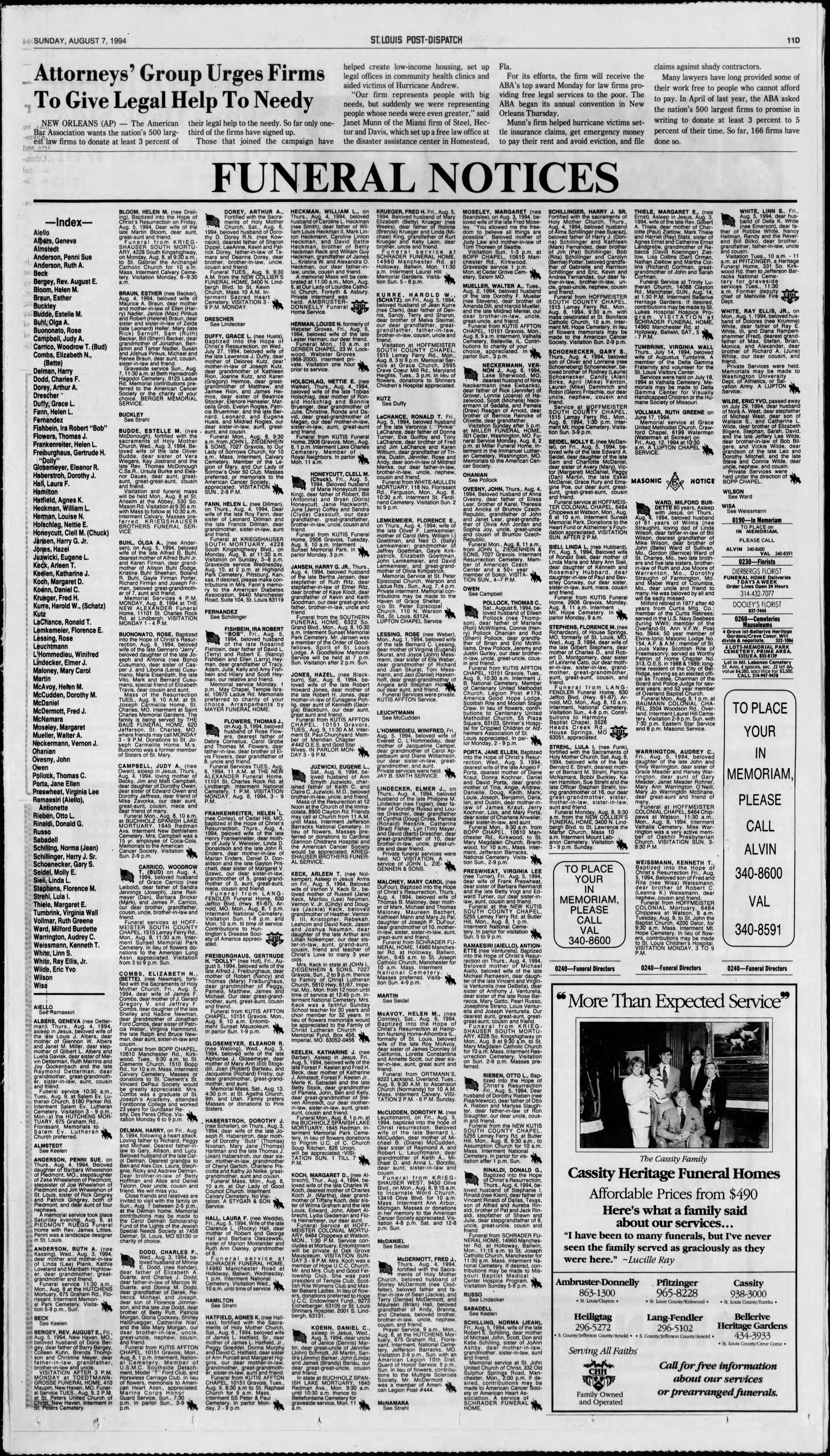 Obituary, Milford Burdette Ward (St. Louis Post Dispatch, 7 August, 1994