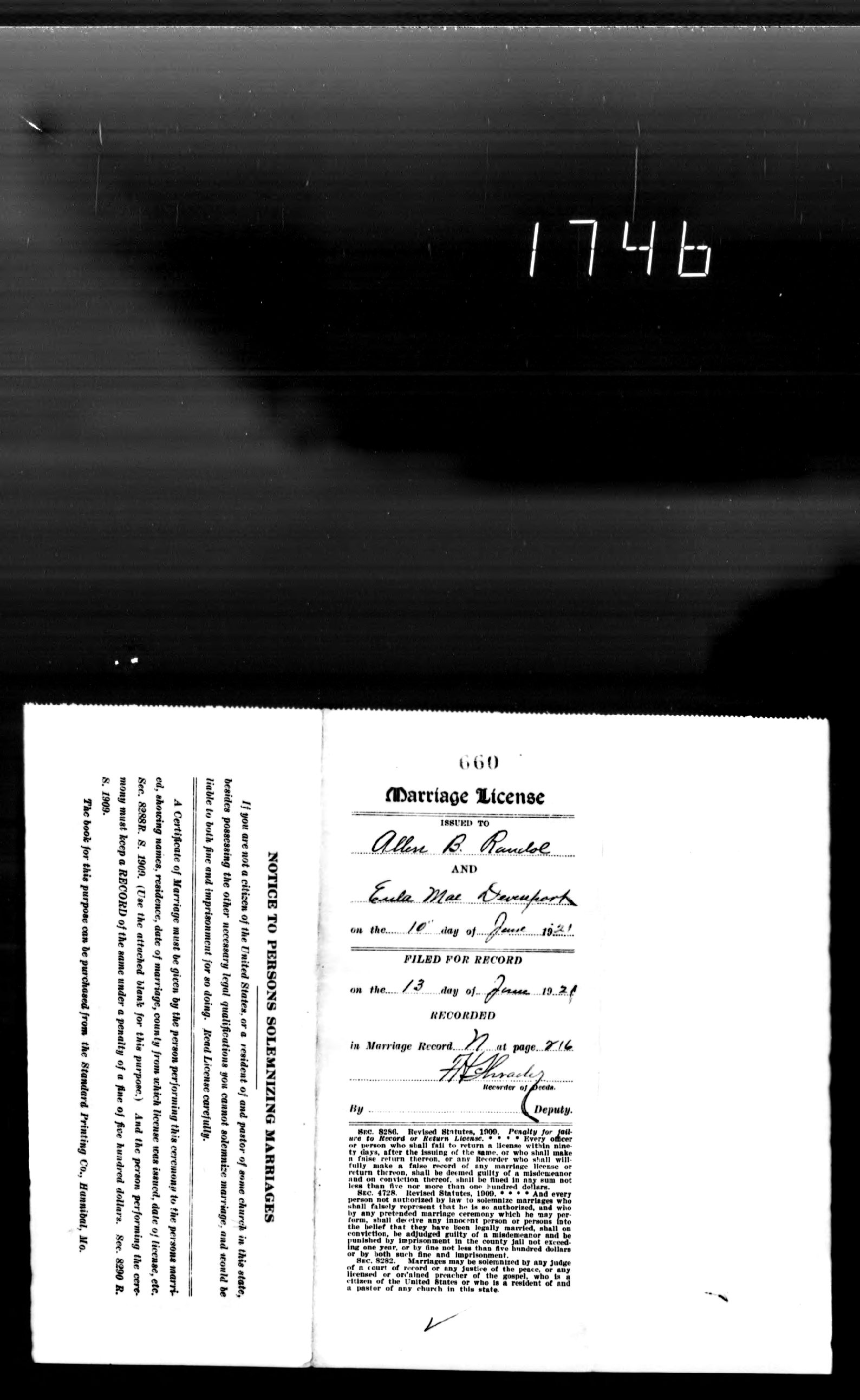 Missouri Marriage Record, Allen B. Randol and Eula Mae Davenport