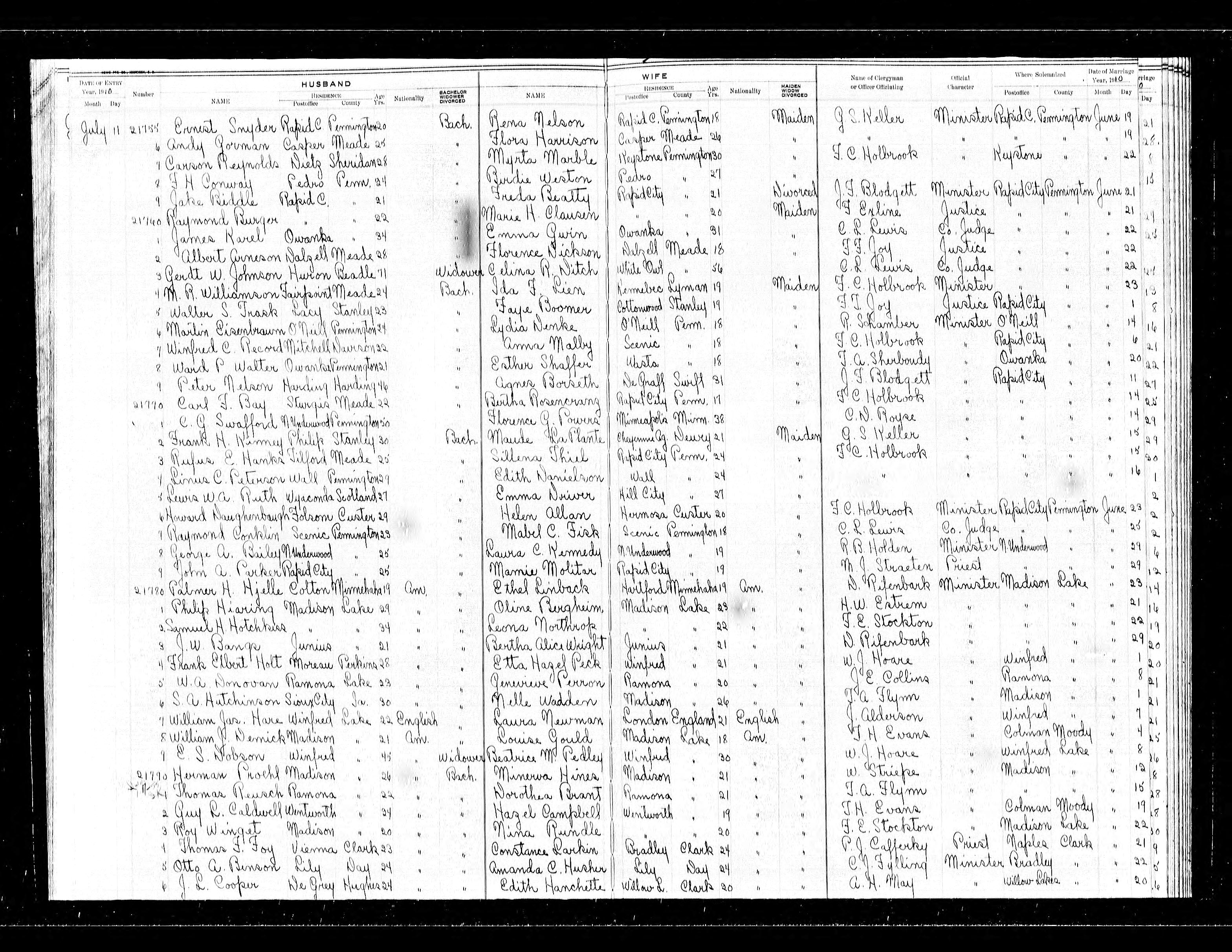 South Dakota Marriage Records, Carl F. Bay and Bertha Rosencranz