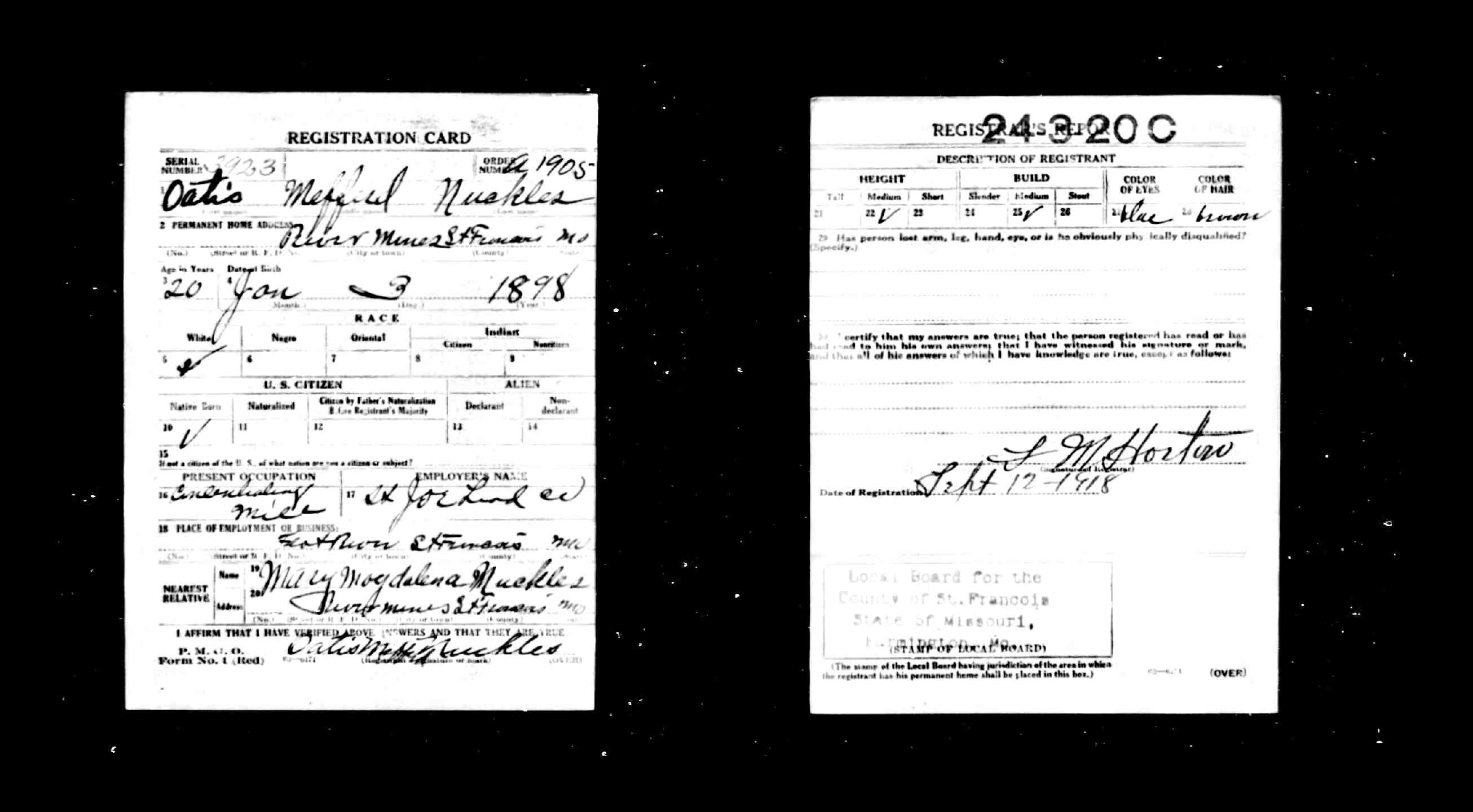 WWI Draft Registration, Oatis Mefferd Nuckles