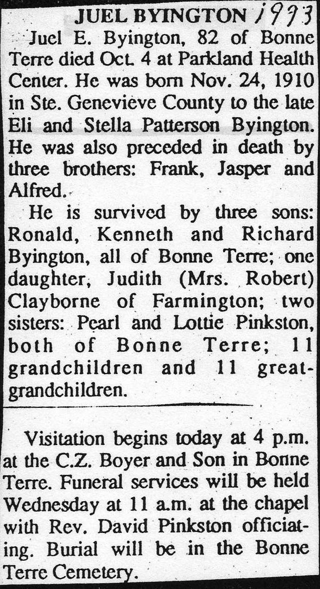 Obituary, Juel Byington