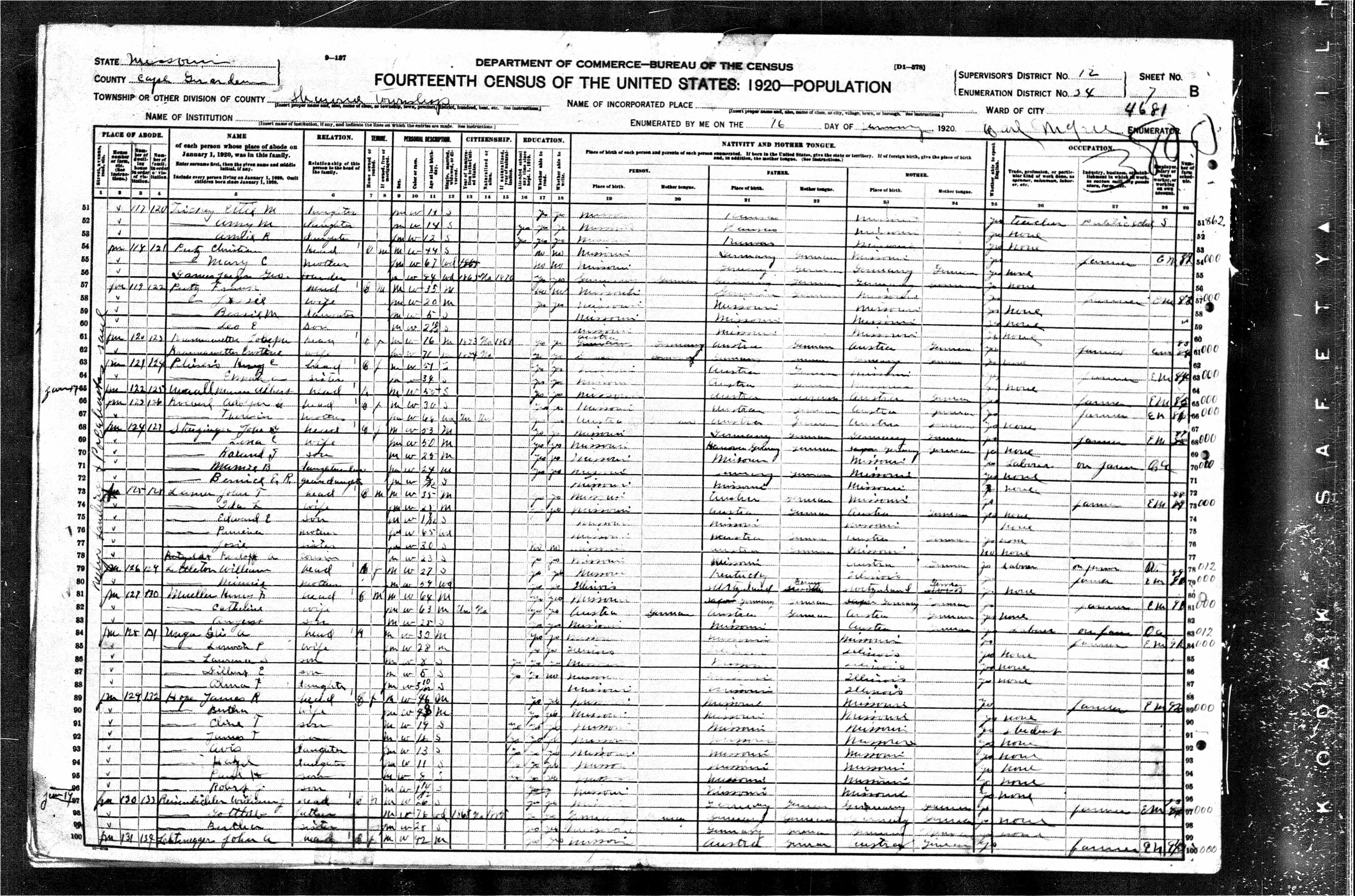 Missouri, Supervisor's District 12, Enumeration District 34, Sheet 7B, Lines 89-96