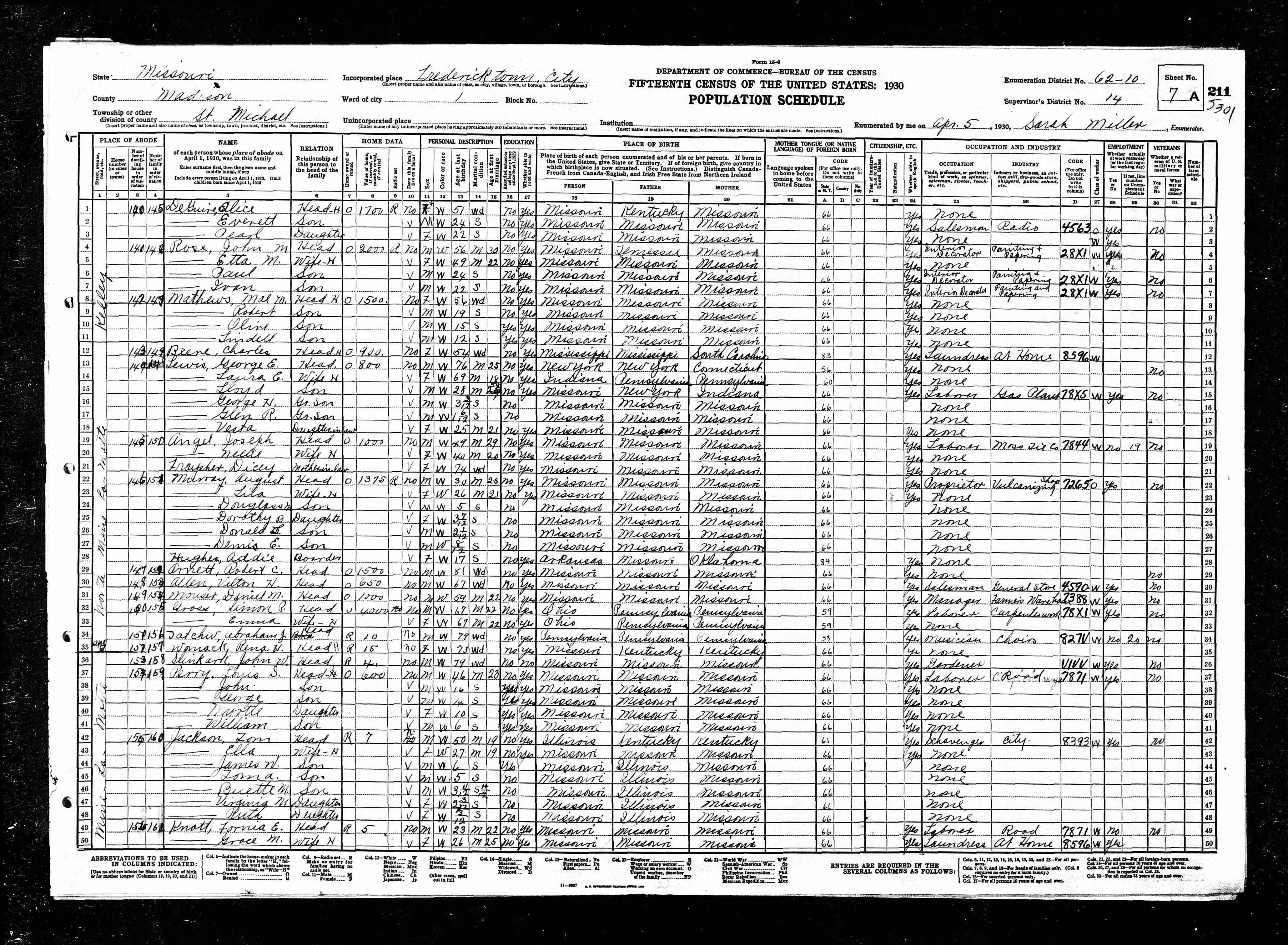 1930 Census, Fredericktown, Madison county, Missouri