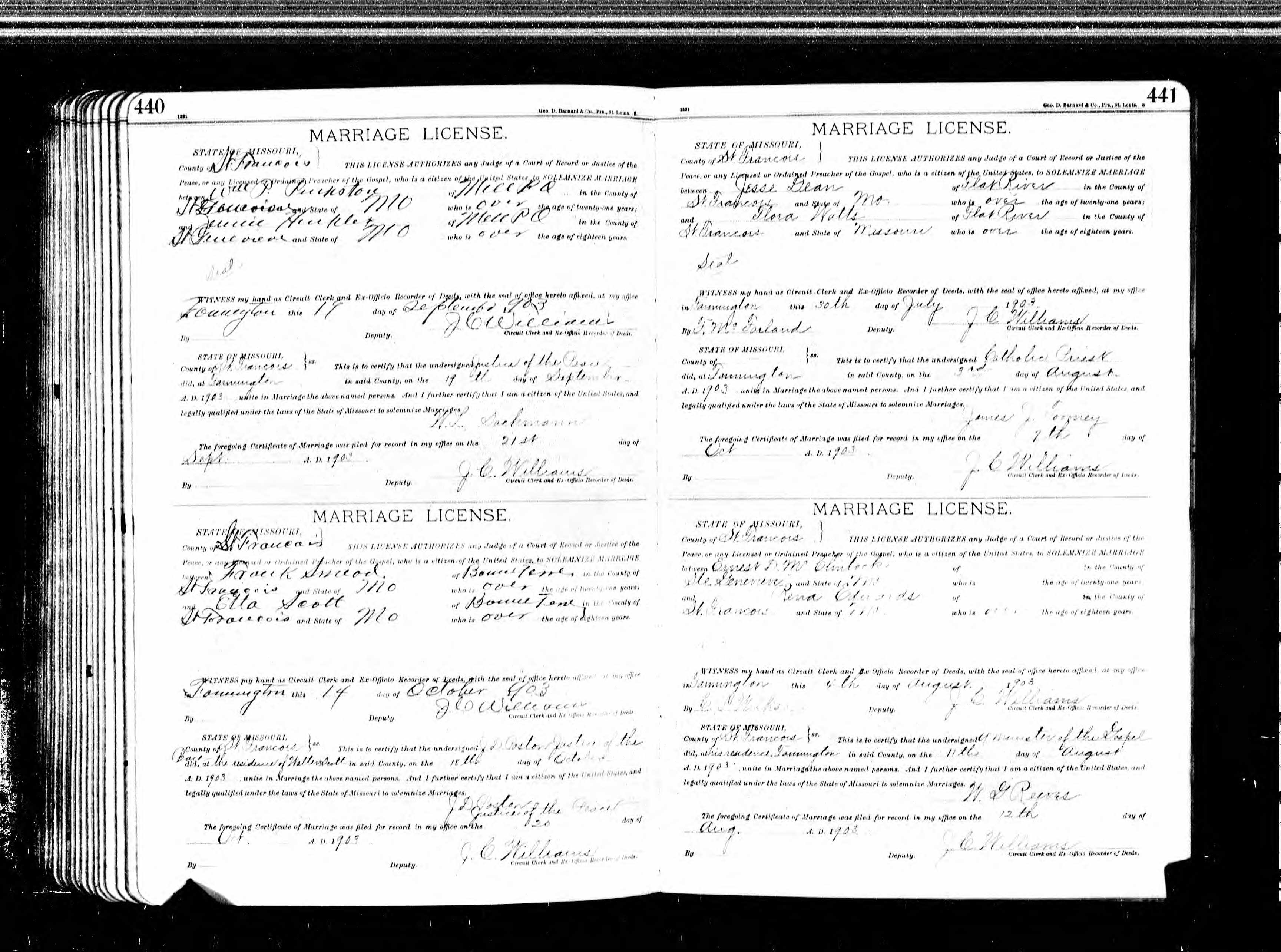 Missouri Marriage Record, William P. Pinkston and Jennie Hinkle