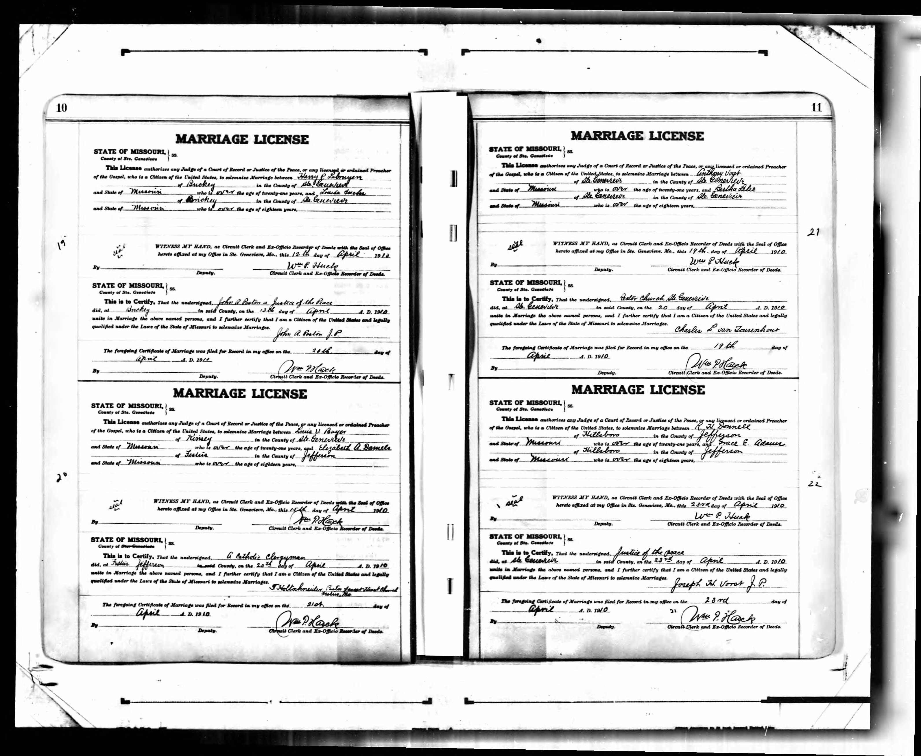 Missouri Marriage Record, Louis V. Bayer and Elizabeth A. Daniels