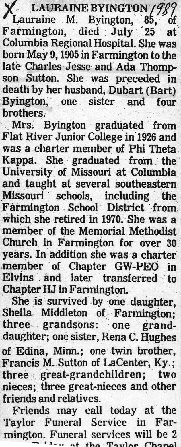 Obituary, Lauraine Byington