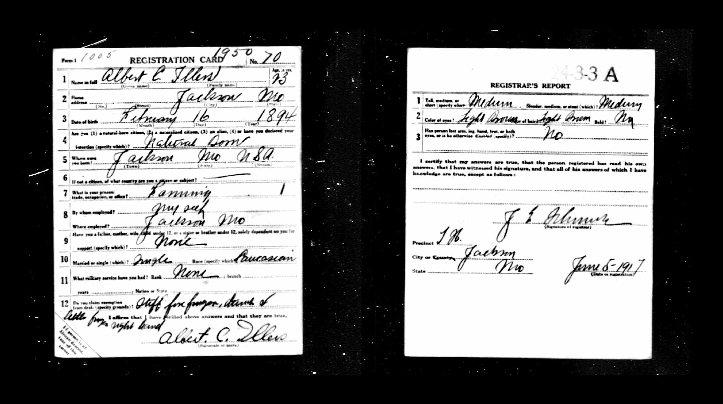 WWI Draft Registration, Albert C. Illers
