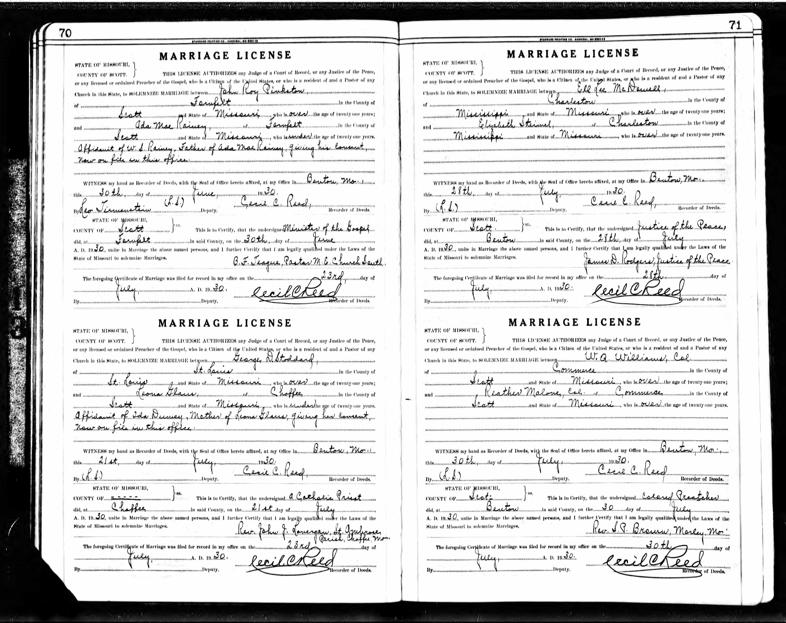 Missouri Marriage Record, Ell Lee McDowell and Elizabeth Steimel