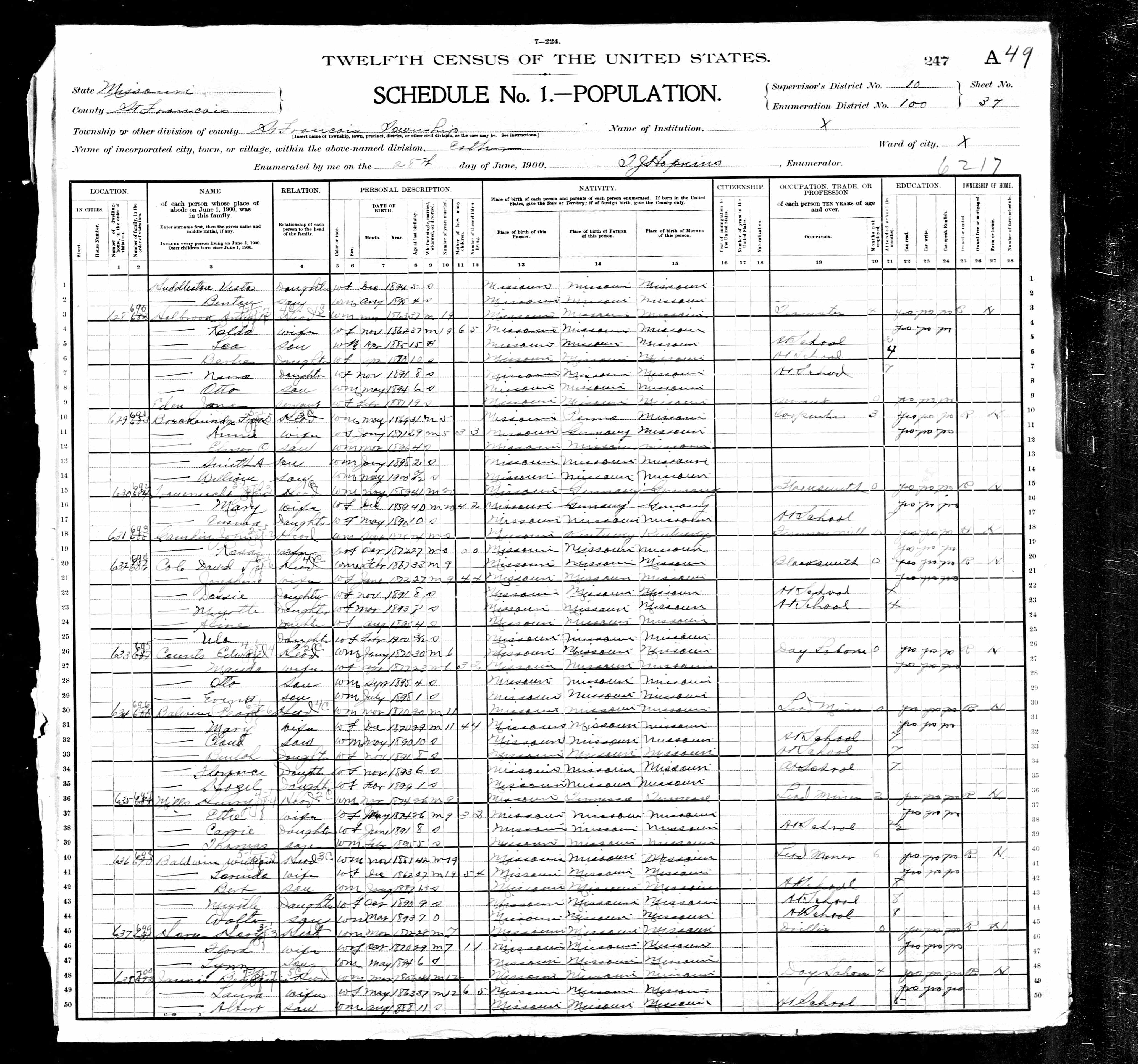 Missouri, Supervisor's District 10, Enumeration District 100, Sheet 37A, Lines 36-39