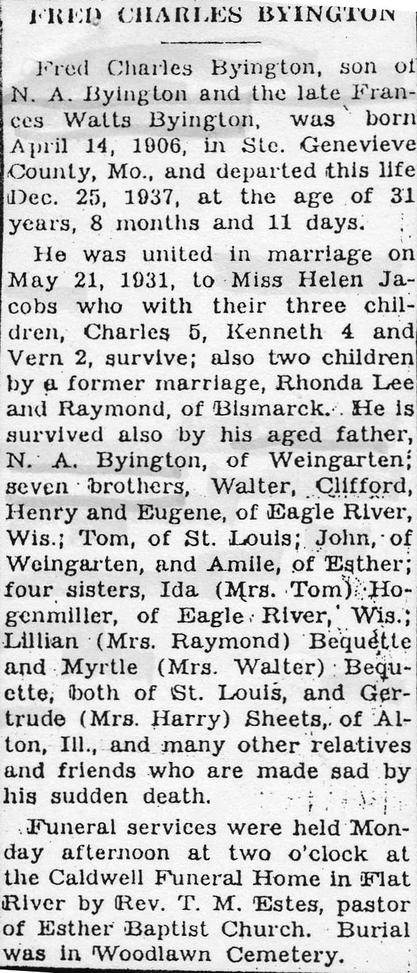 Obituary, Fred Charles Byington