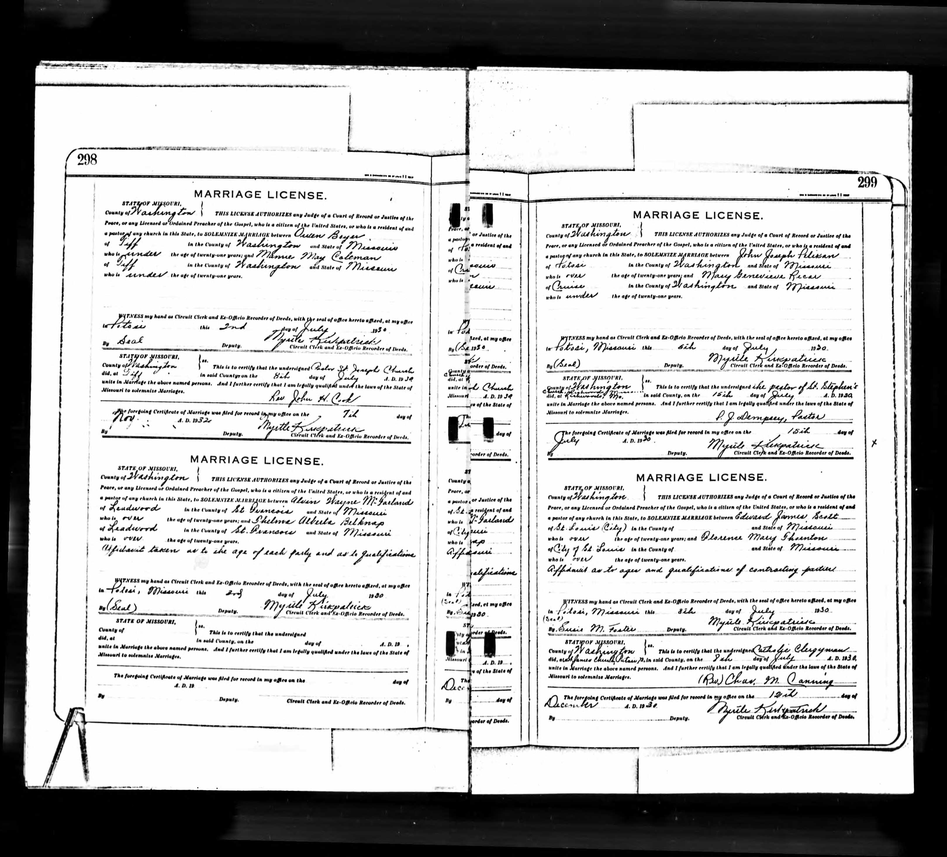 Missouri Marriage Record, Alvin Wayne McFarland and Thelma Alberta Belknap