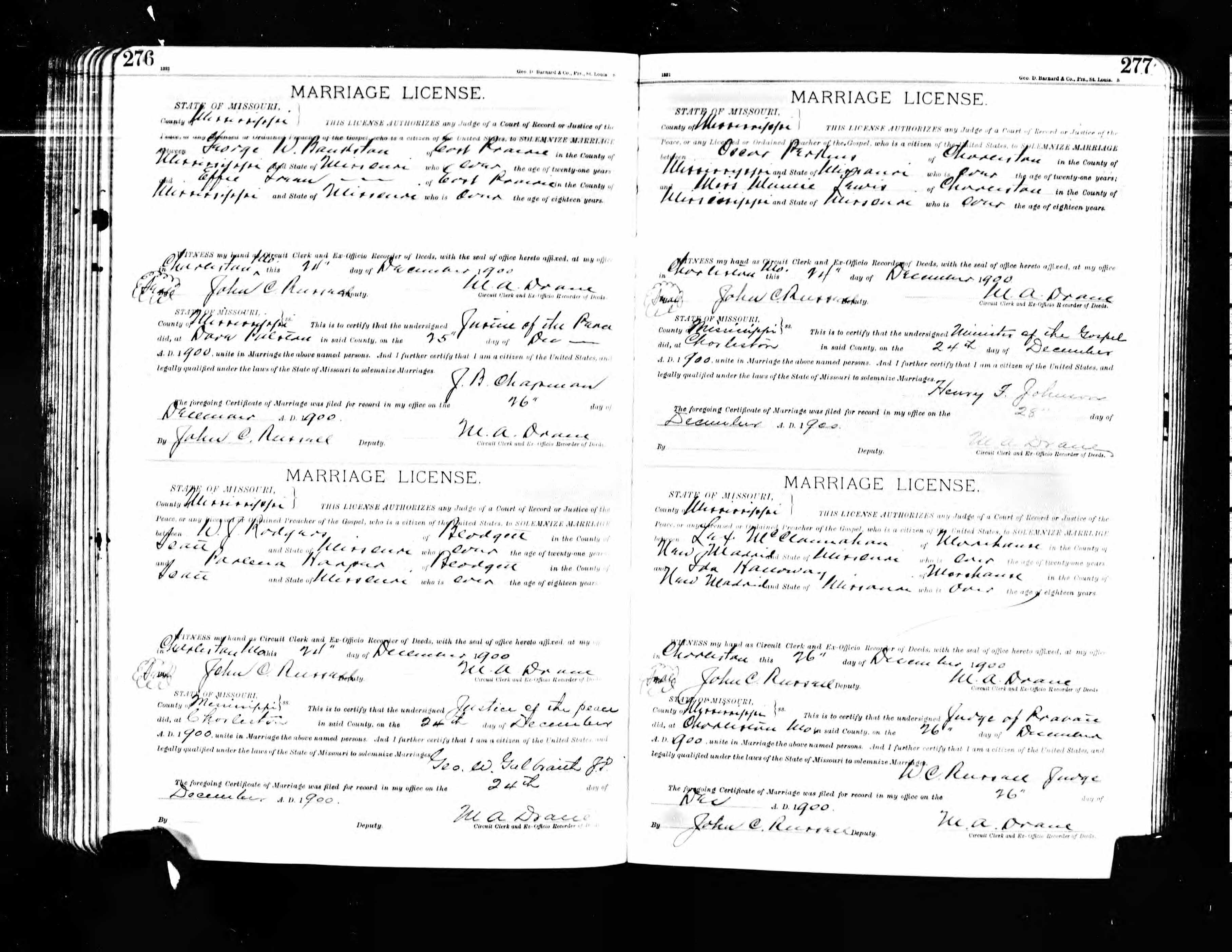 Missouri Marriage Record, Lex McClanahan and Ida Halloway