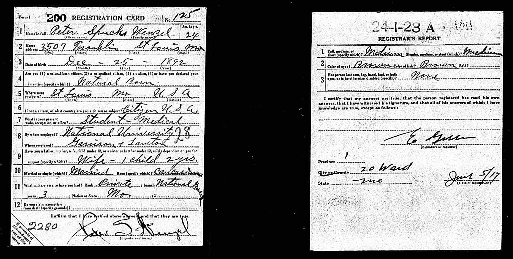 WWI Draft Registration, Peter Spuck Wenzel