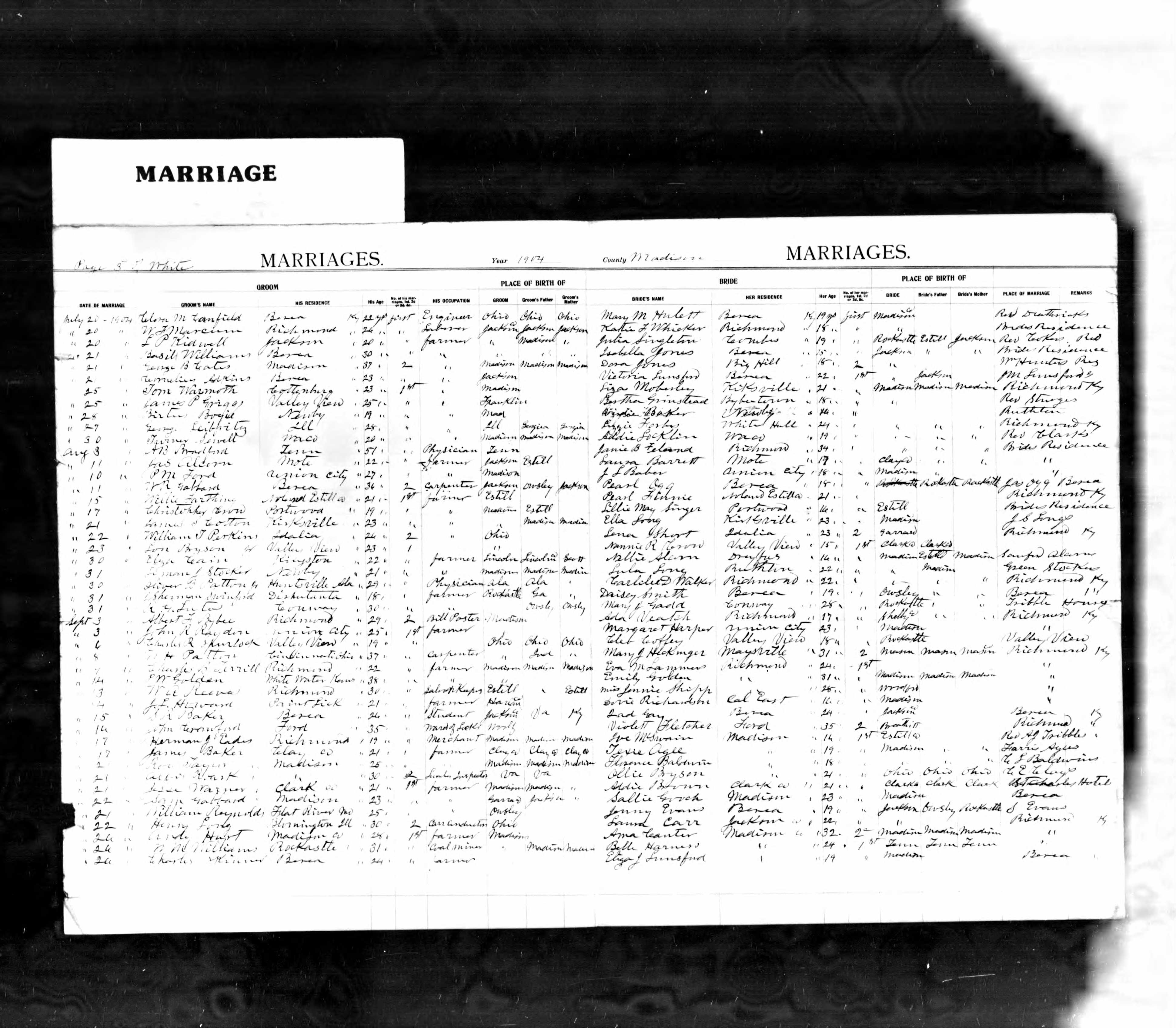 Kentucky Marriage Record, William Reynolds and Jenny Evans
