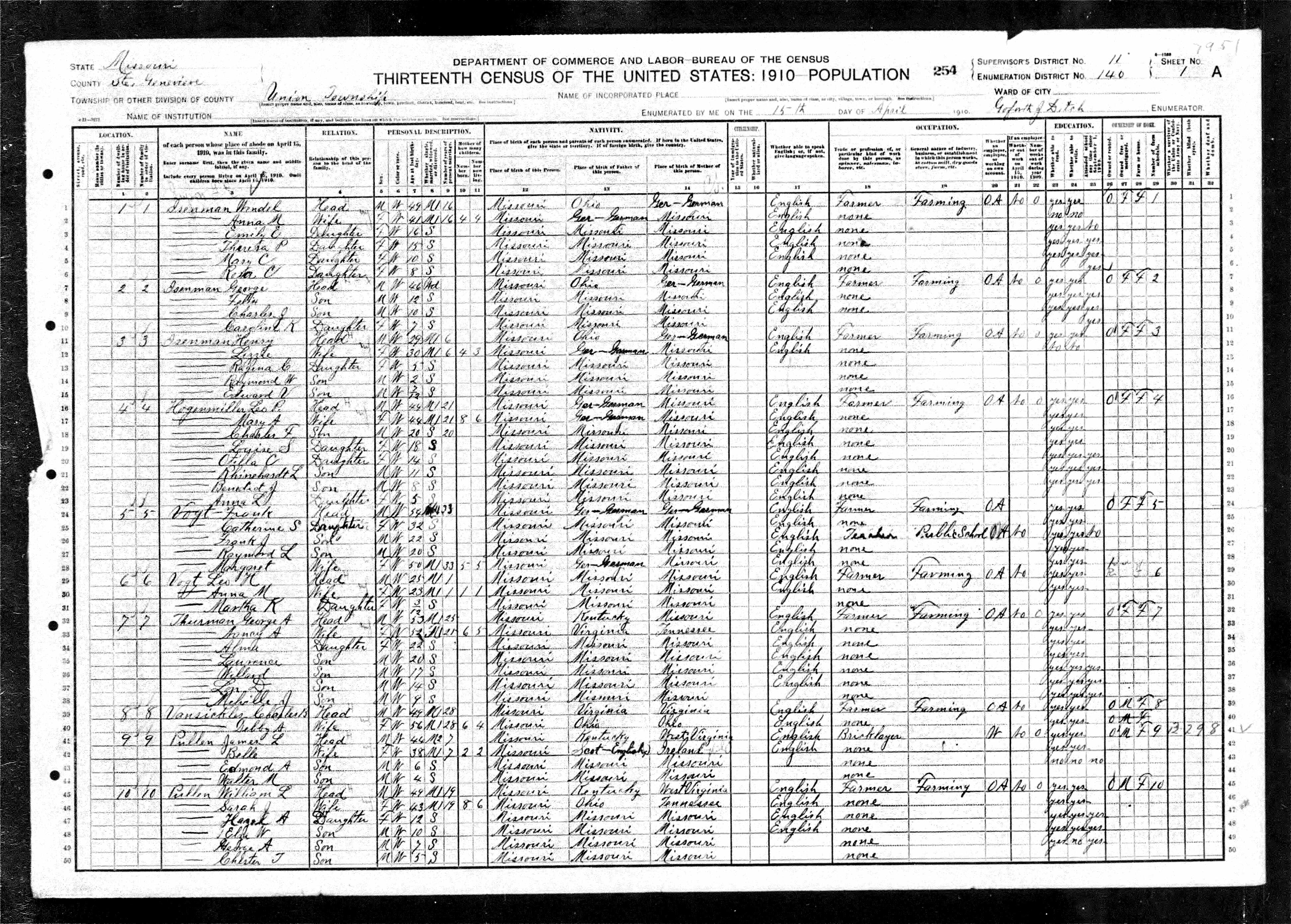1910 Census, Union township, Ste. Genevieve county, Missouri