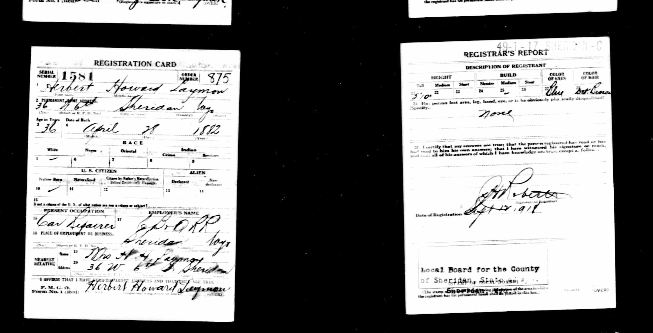 WWI Draft Registration, Herbert Howard Laymon