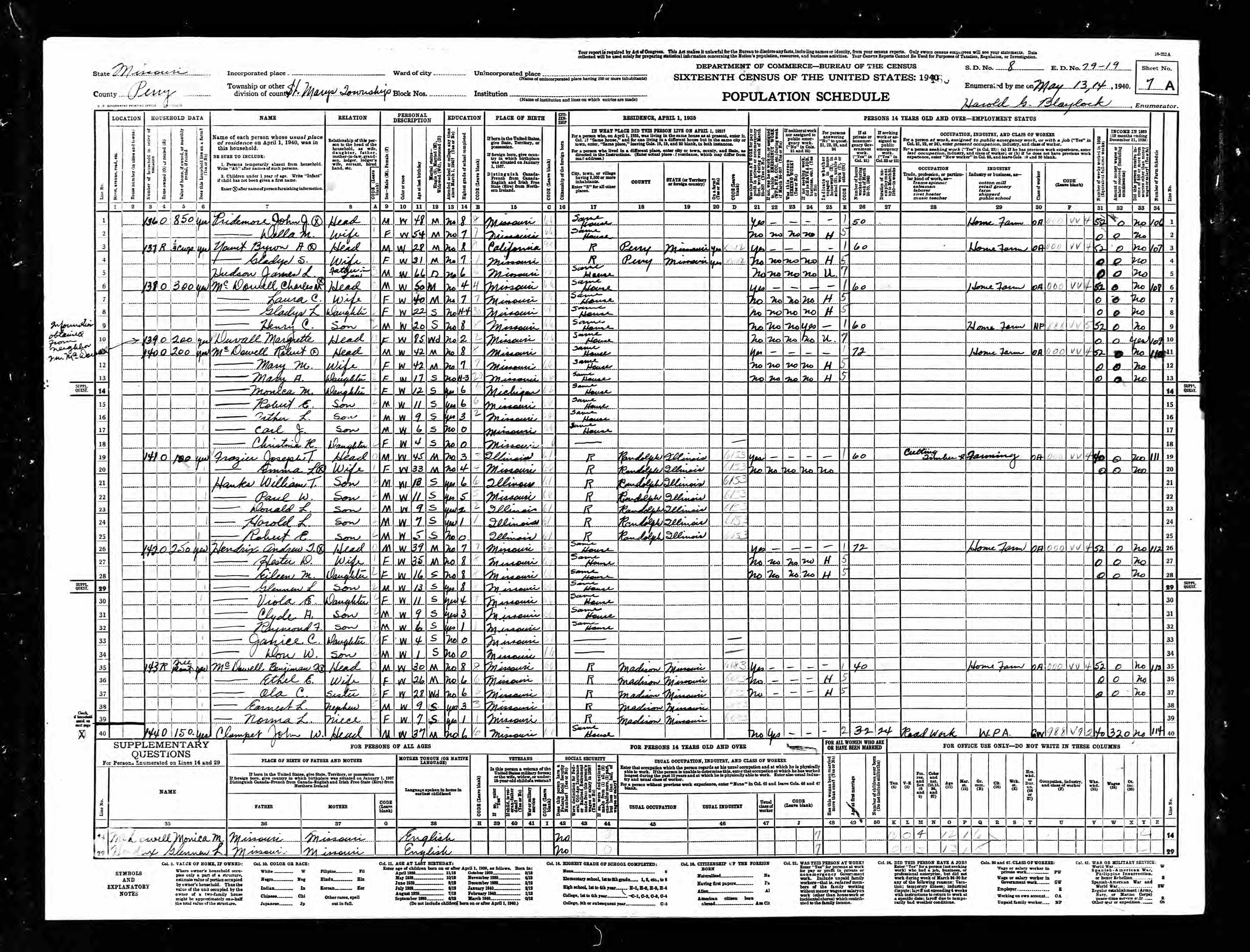 Missouri, S.D. 8, E.D. 79-19, Sheet 7A, Lines 1-2