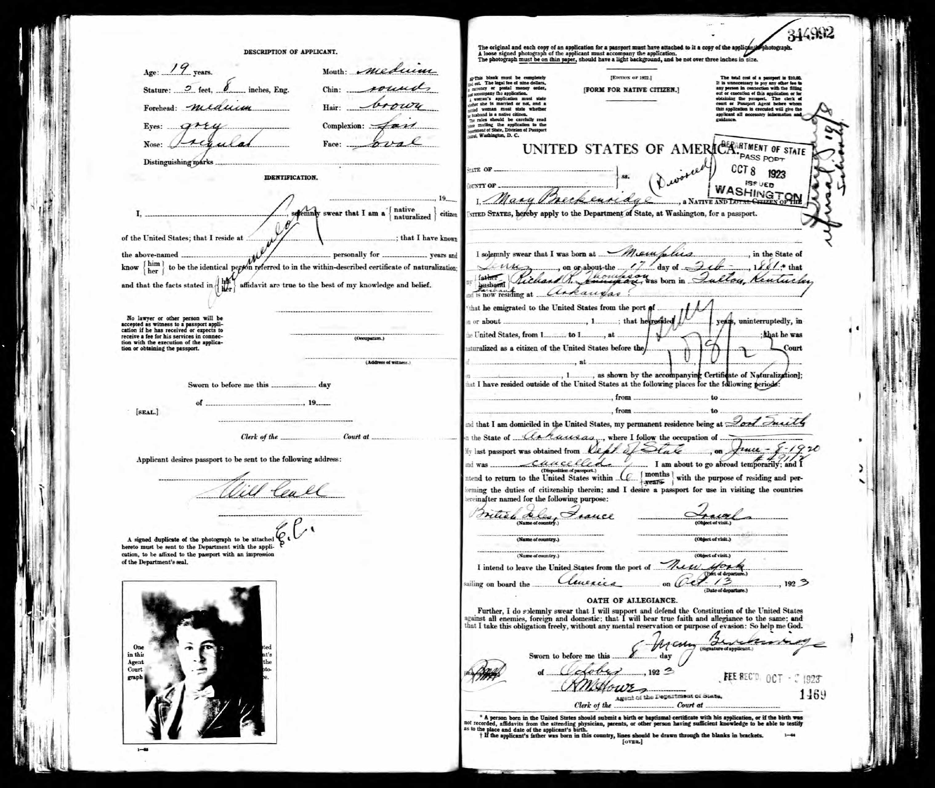 Passport Application, Mary Breckenridge (1 of 2)