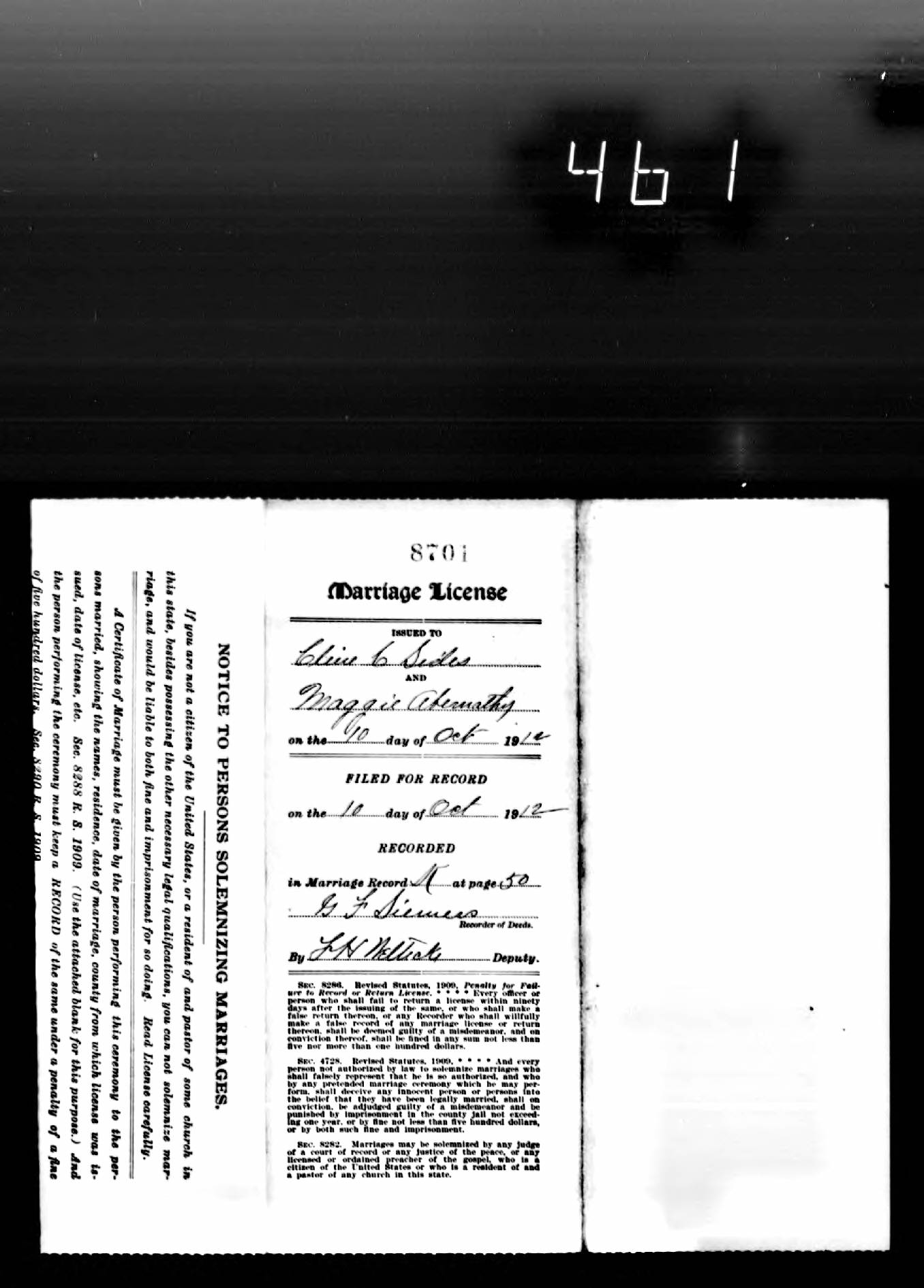 Missouri Marriage Record, Cline C. Sides and Maggie Abernathy