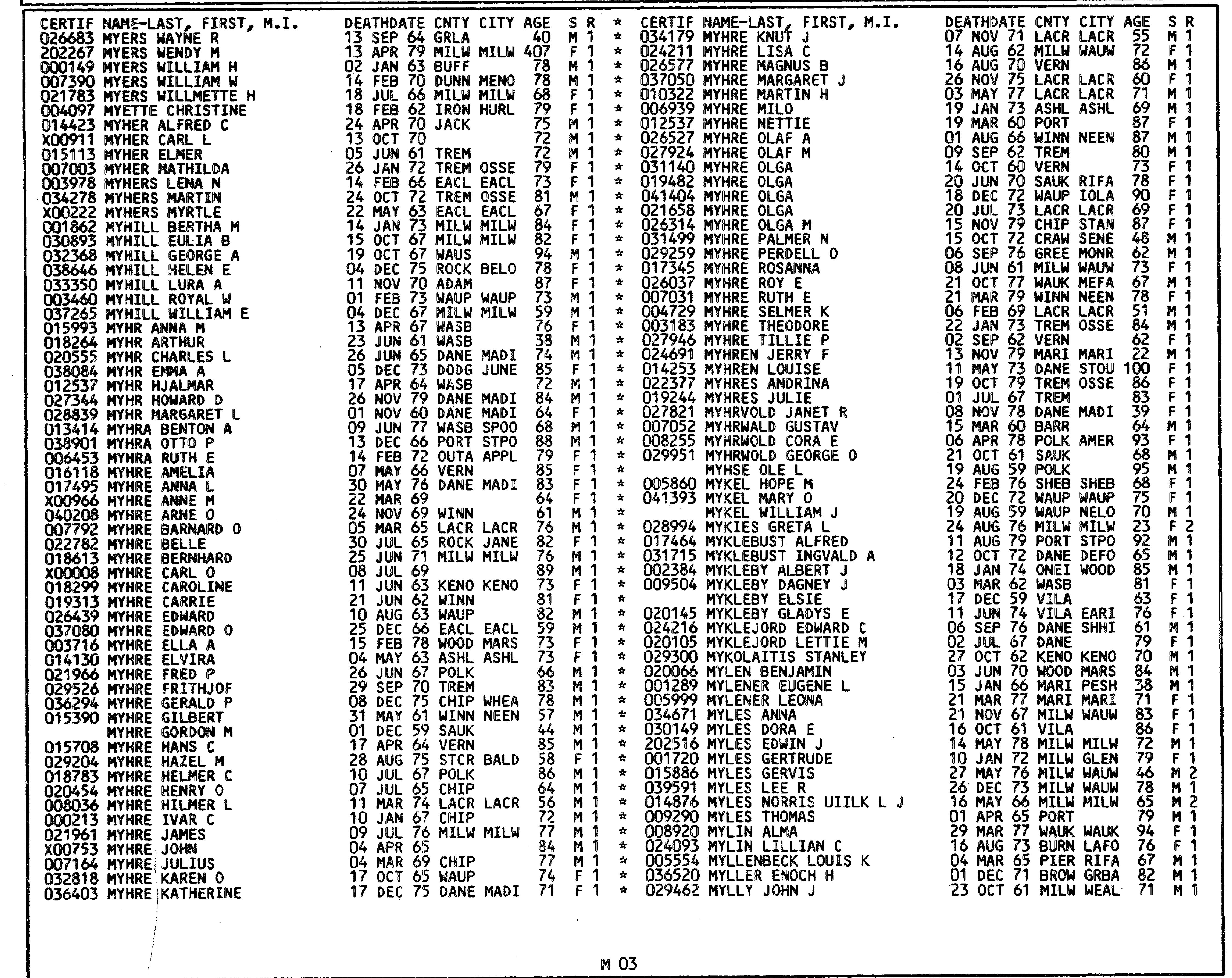 | Myhr, Elsie Marian | 10 Jun 1919 | 29 Aug 2006 |