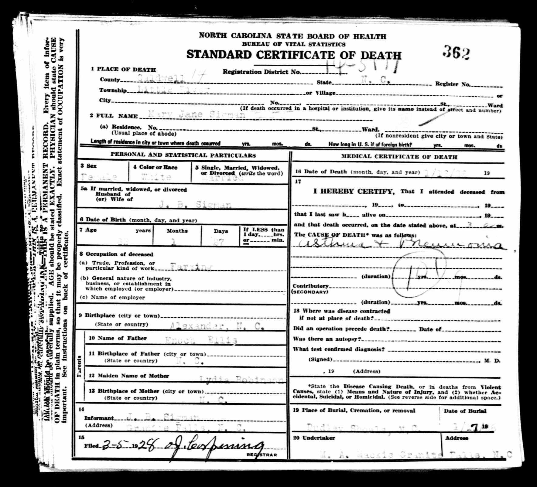 | Burial | 17 Jan 1928 | Dudley Shoals Baptist Church Cemetery, Caldwell, North Carolina, United States of America | ||||||||||||||||||||||||||||||||||||||||||||||||||||||||||||||||||||||||||||||||||||||||||||||||||||||||||||||||||||||||