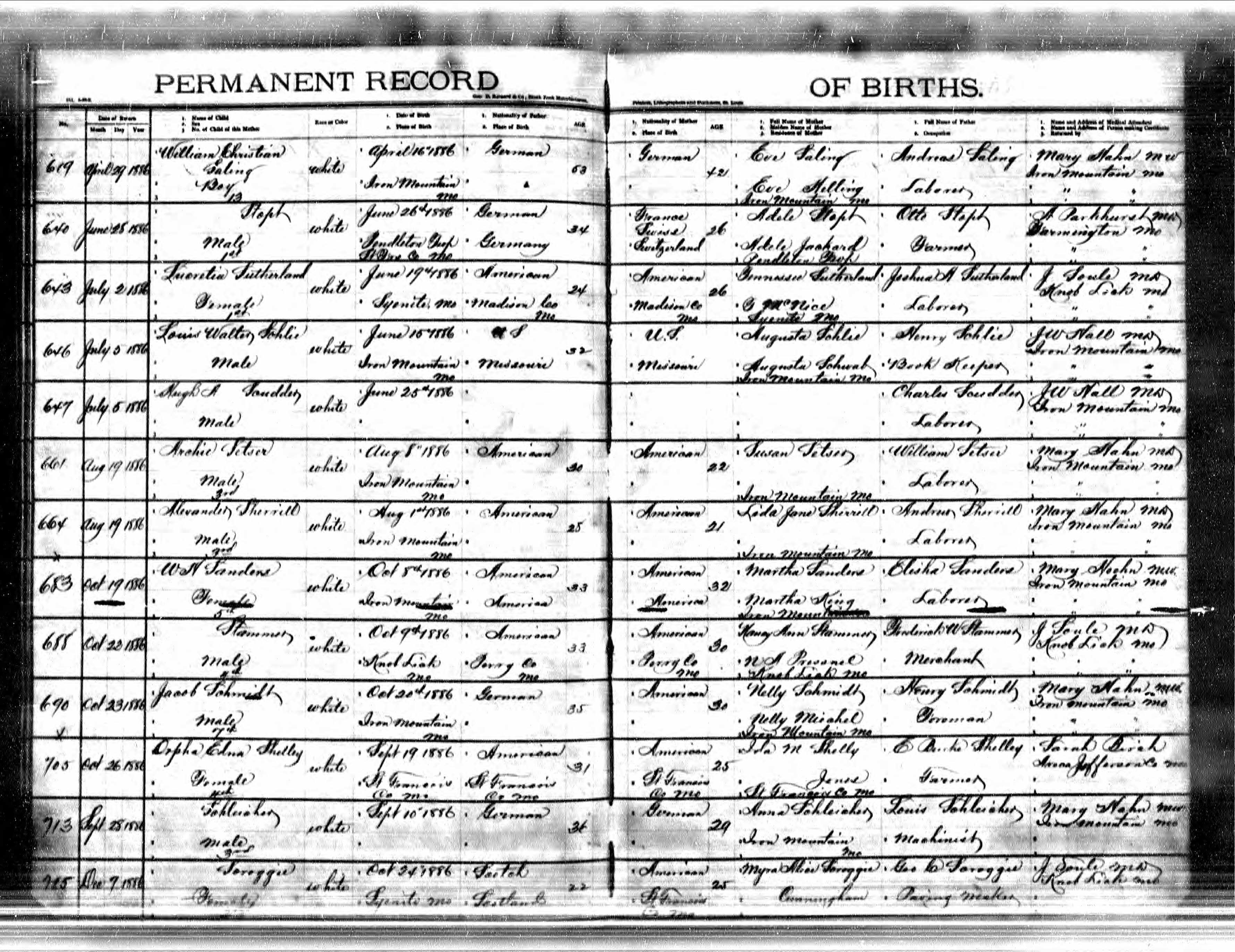 | Birth | 19 Sep 1886 | Bonne Terre, Perry, St. Francois, Missouri, United States of America | ||||||||||||||||||||||||||||||||||||||||||||||||||||||||||||||||||||||||||||||||||||||||||||||||||||||||||||||