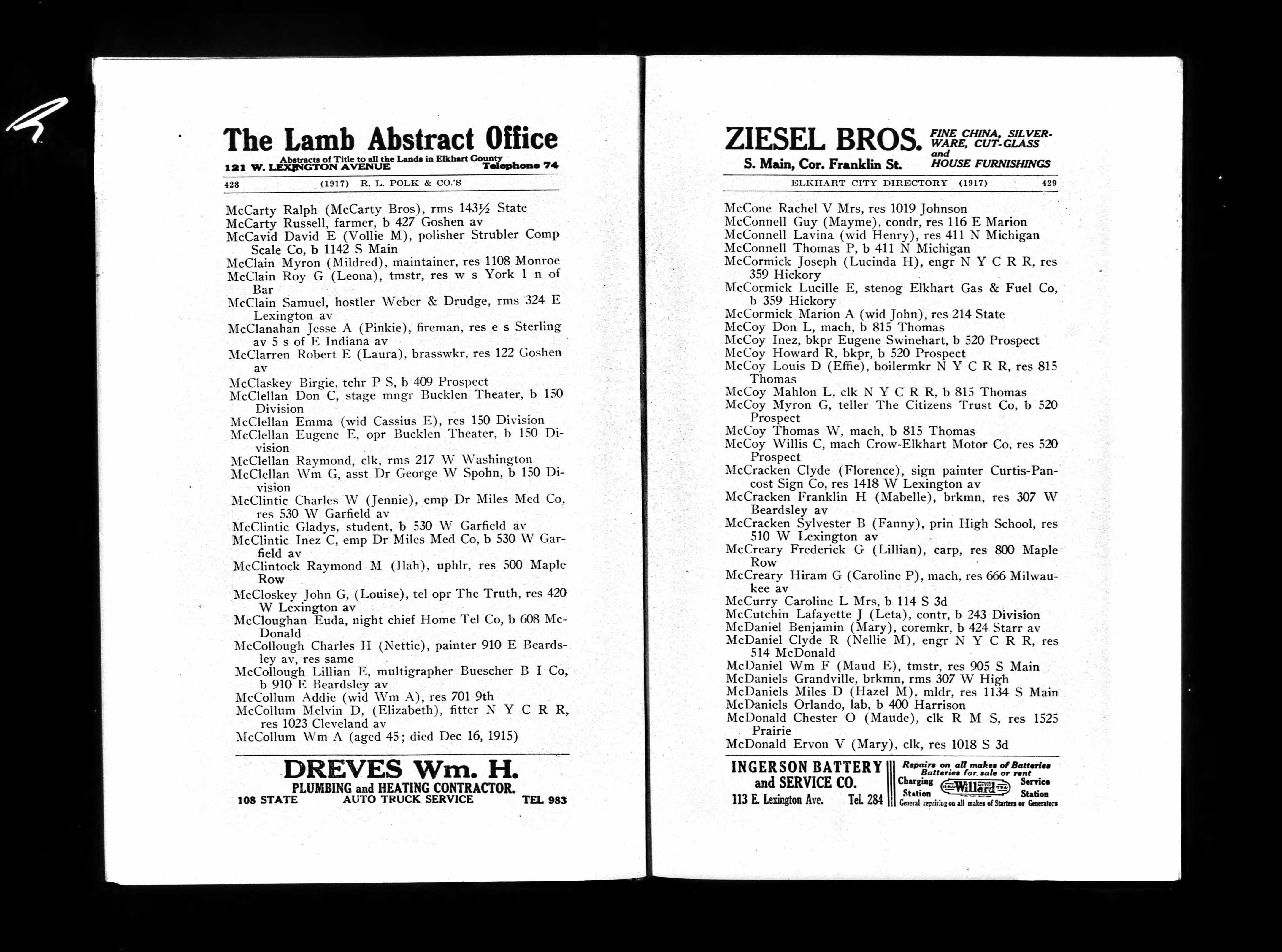 | Residence | 1918 | Elkhart, Elkhart, Indiana, United States of America | Jesse A (Pinkie) McClanahan | ||||||||||||||||||||||||||||||||||||||||||||||||||||||||||||||||||||||||||||||||||||||||||||||||||||||||||||||||||||||||||||||||||||||