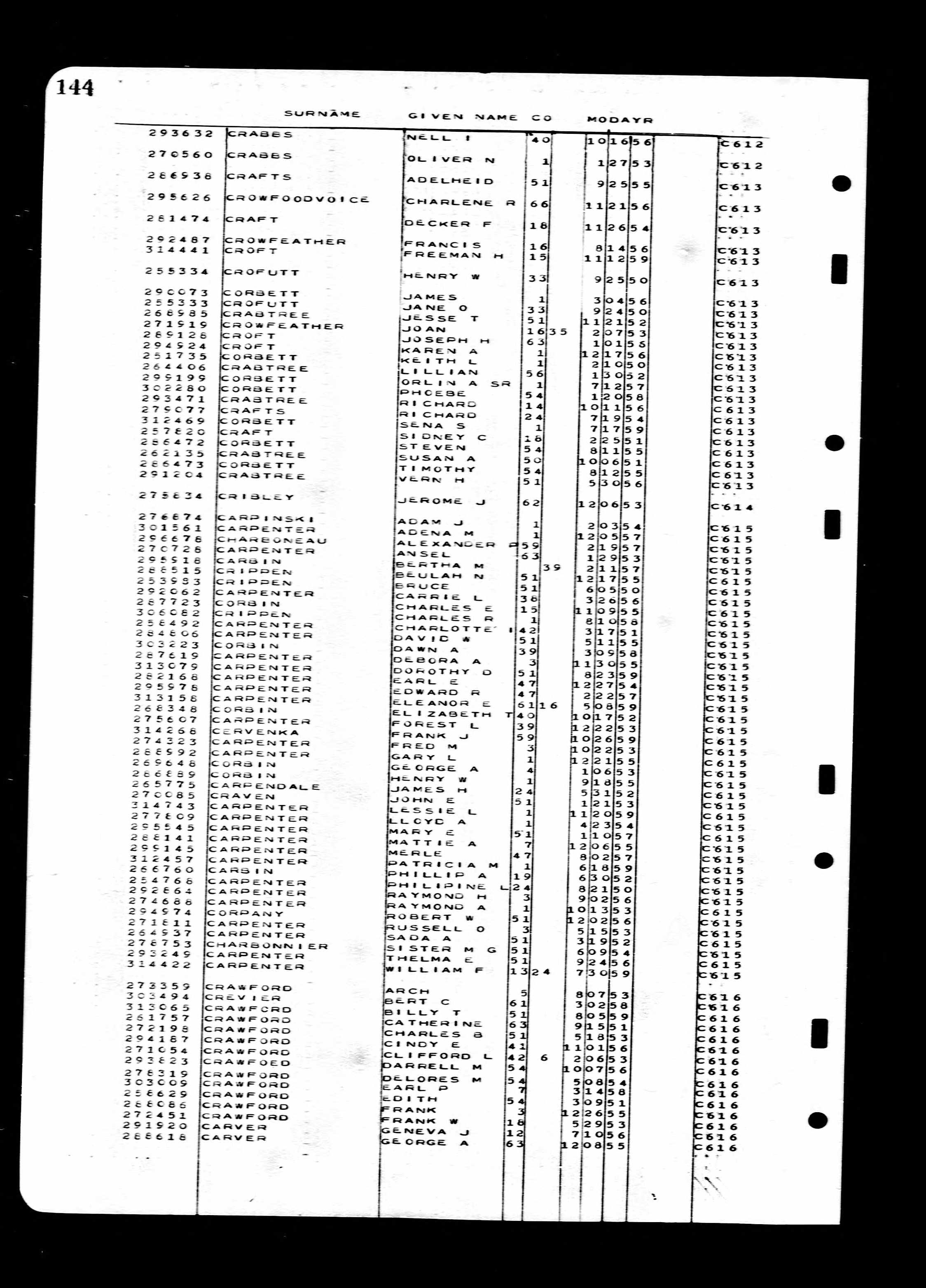 | Crawford, Delores Eleanore | about 1919 | about 2006 |