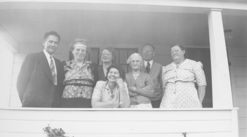 8/11 - Robert Rode, ?, Cynthia Strong Rode, Dorothy Hickam Strong, Samira Foster Runyan Strong, Harold Robert Strong and Iva Strong Douglas