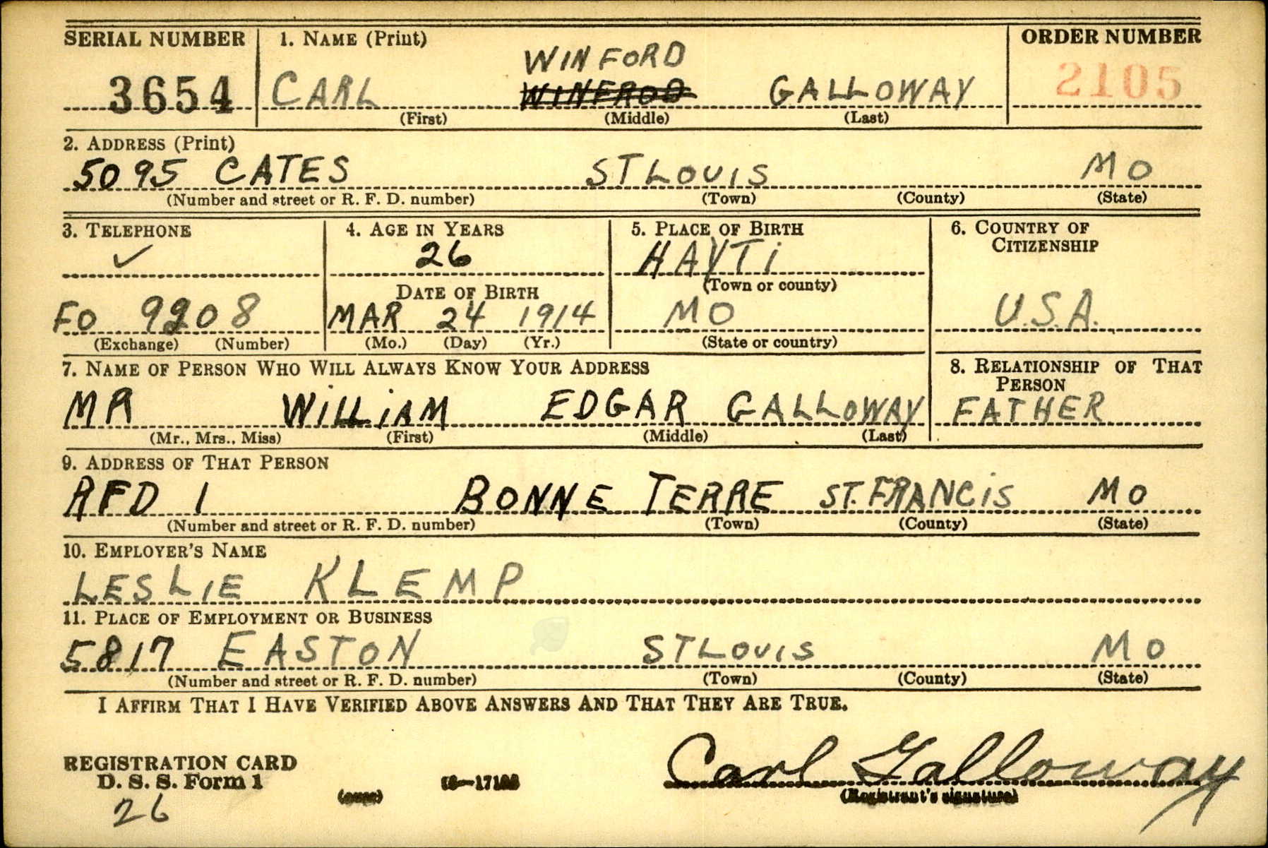 Galloway, Carl Winford 1 2a