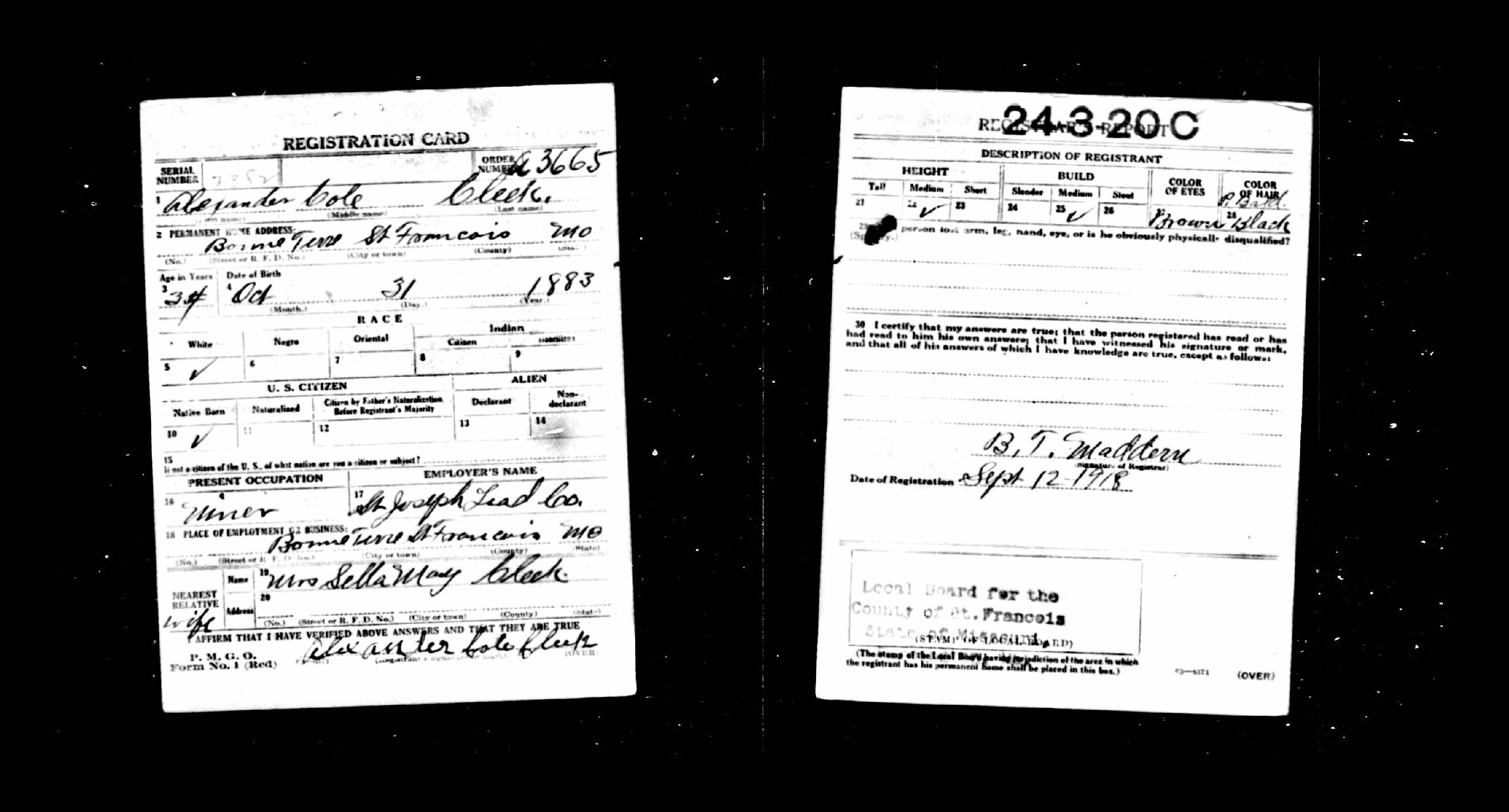 | Draft Registration | 12 Sep 1918 | St. Francois, Missouri, United States of America | ||||||||||||||||||||||||||||||||||||||||||||||||||||||||||||||||||||||||||||||||||||||||||||||||||||||||||||||||||||||||||||||||||