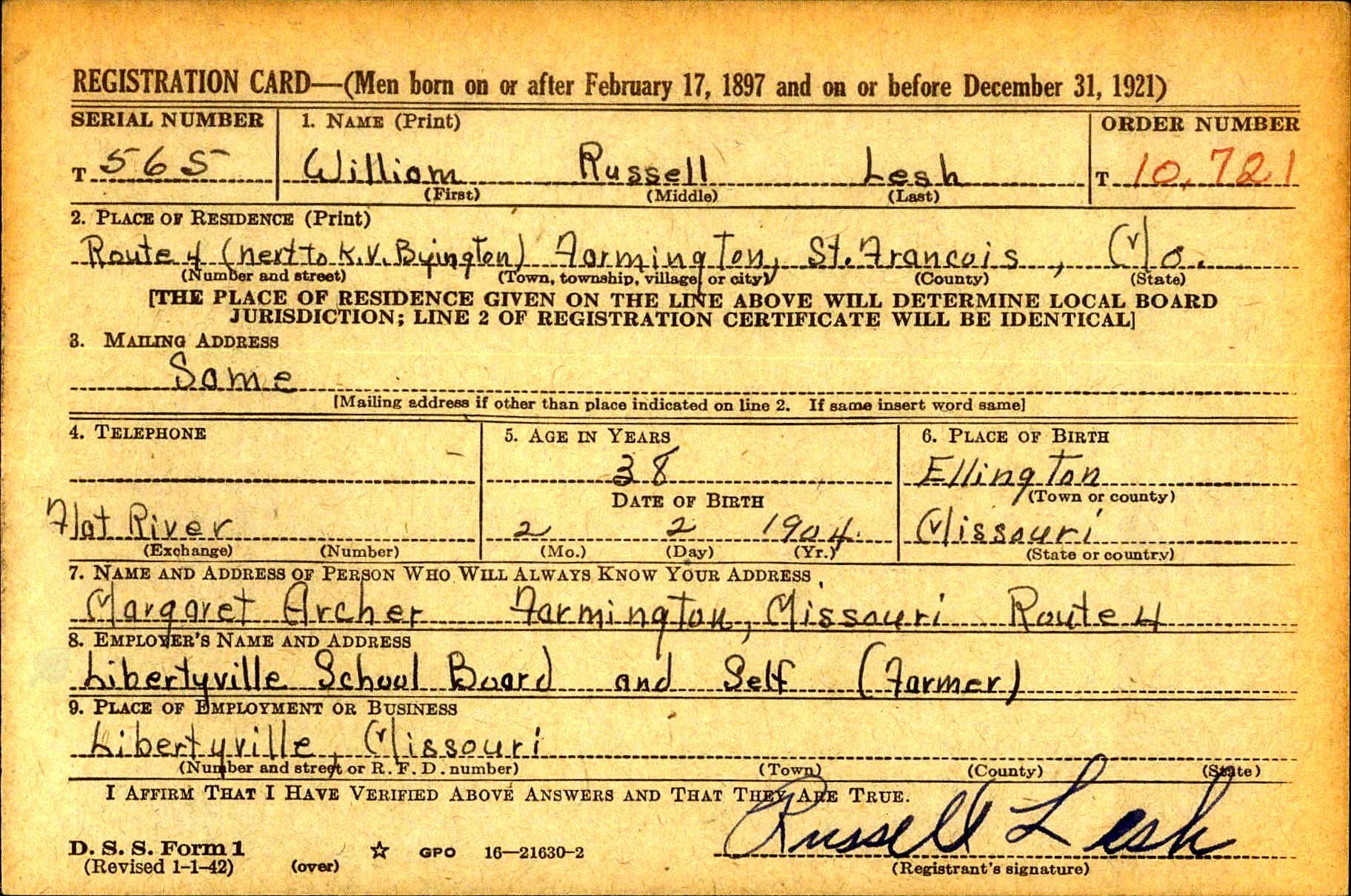 | Draft Registration | 16 Feb 1942 | St. Francois, Missouri, United States of America | ||||||||||||||||||||||||||||||||||||||||||||||||||||||||||||||||||||||||||||||||||||||||||||||||||||||||||||||||||||||||||||||||||