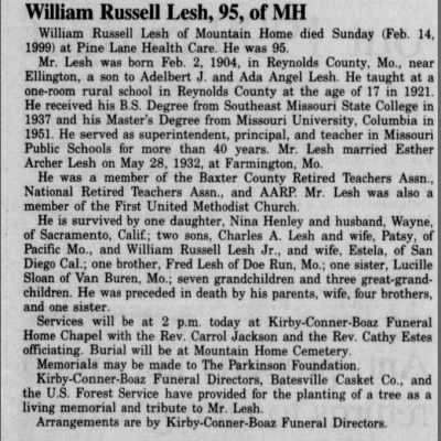 | Lesh, William Russell | 2 Feb 1904 | 14 Feb 1999 | ||