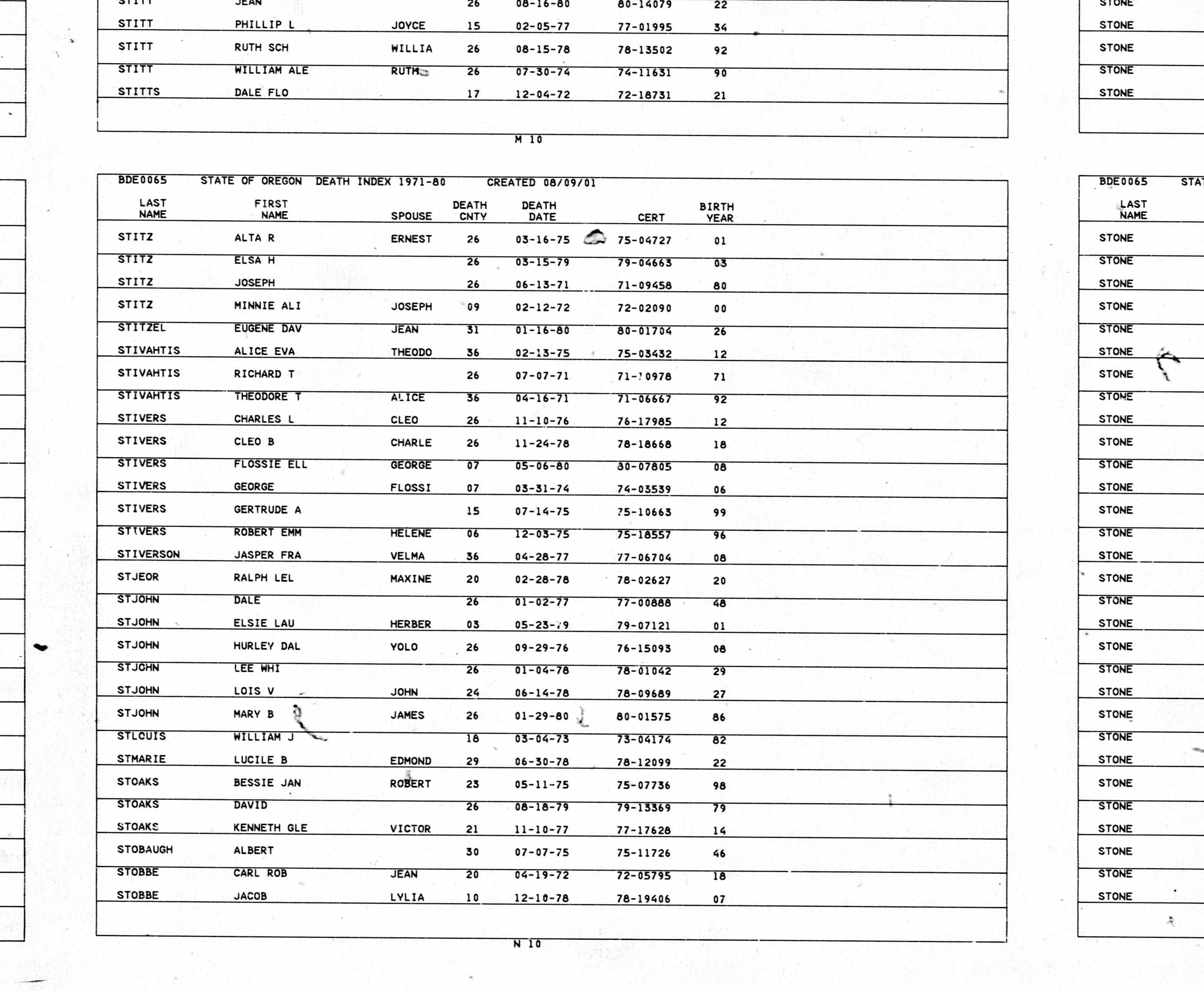 | Stoaks, Mary Viola | 4 Jun 1932 | 24 Apr 2018 |