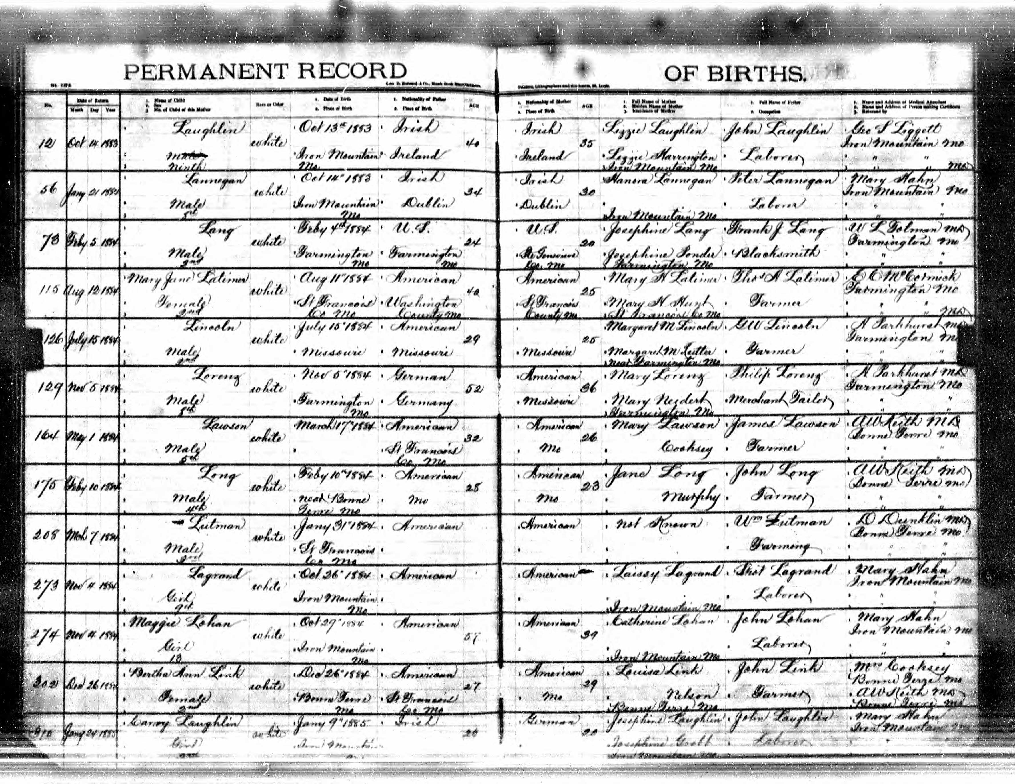 | Birth | 31 Jan 1884 | St. Francois, Missouri, United States of America | ||