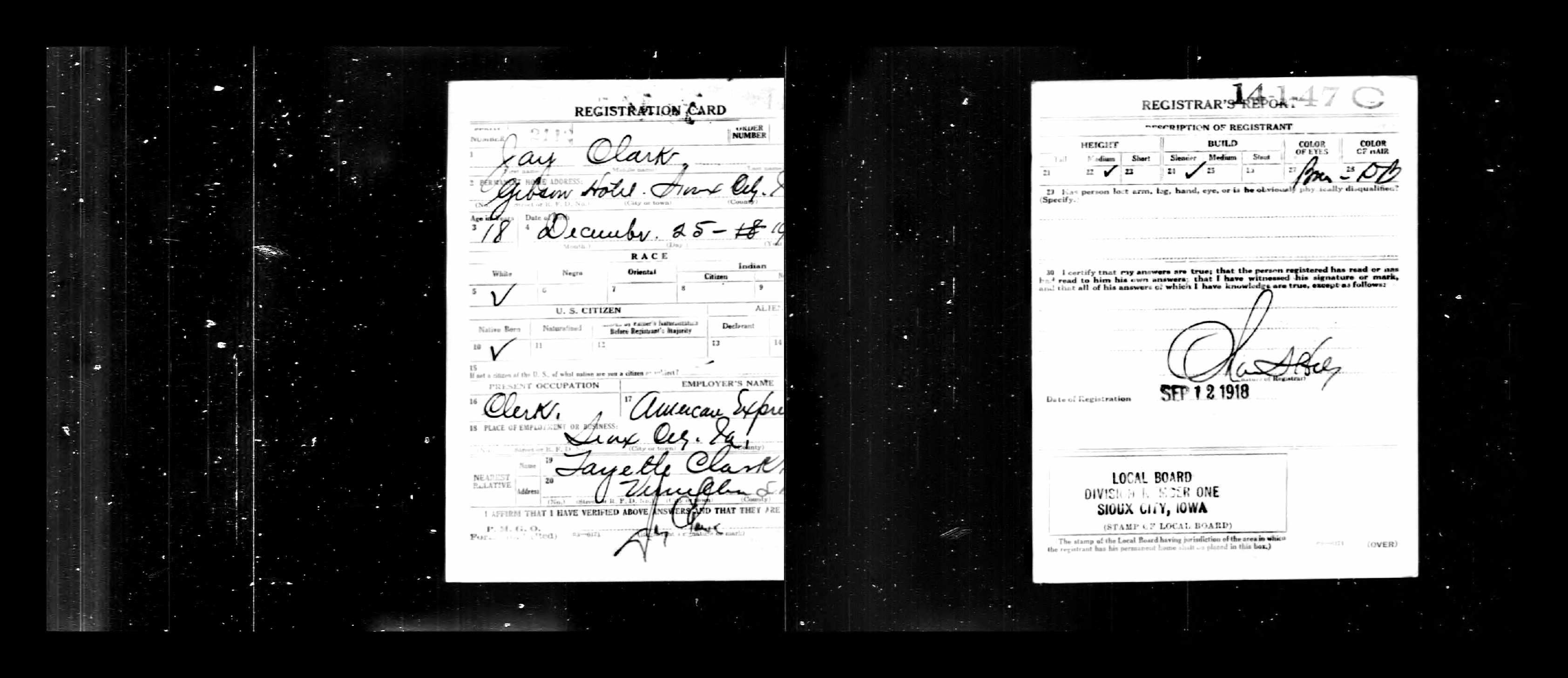 | Draft Registration | 12 Sep 1918 | Sioux City, Woodbury, Iowa, United States of America | ||||||||||||||||||||||||||||||||||||||||||||||||||||||||||||||||||||||||||||||||||||||||||||||||||||||||||||||||||||||||||||||||||||||||||||||||||||||
