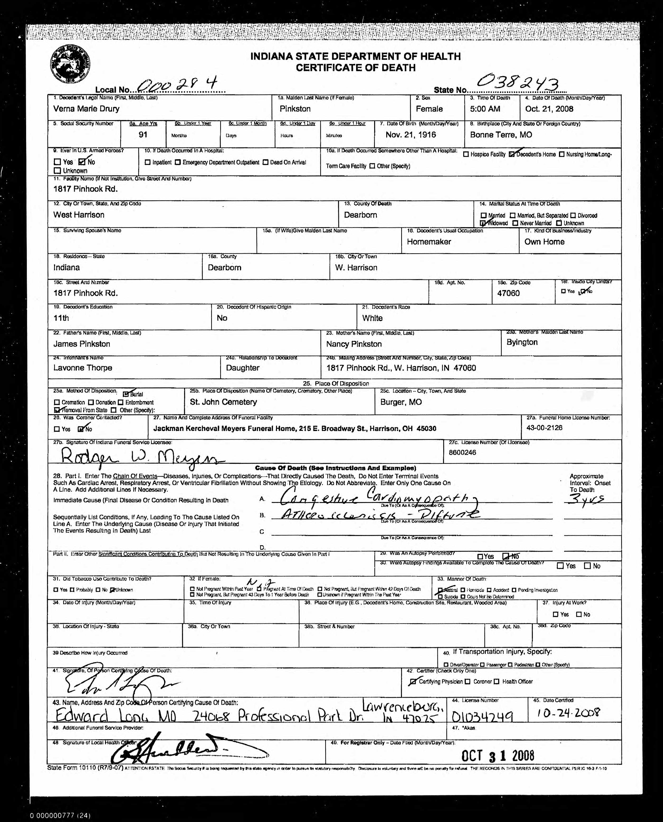 | Death | 21 Oct 2008 | West Harrison, Harrison, Dearborn, Indiana, United States of America | ||||||||||||||||||||||||||||||||||||||||||||||||||||||||||||||||||||||||||||||||||||||||||||||||||||