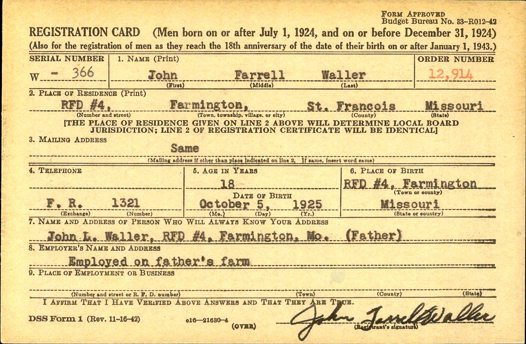 | Draft Registration | 5 Oct 1943 | Farmington, Saint Francois, St. Francois, Missouri, United States of America | |||||||||||||||||||||||||||||||||||||||||||||||||||||||||||||||||||||||||||||||||||||||||||||||||||||||||||||||||||||||||||||