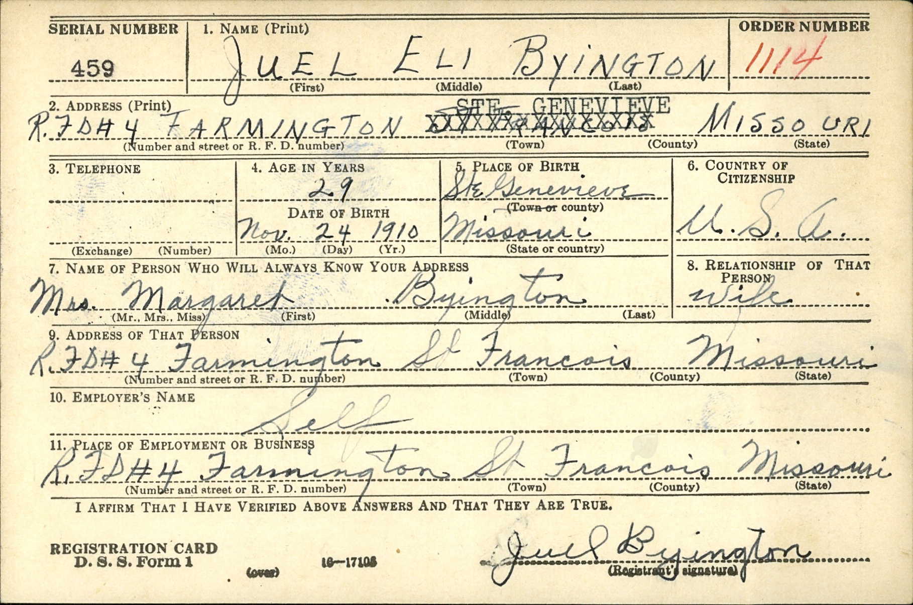 | Draft Registration | 16 Oct 1940 | Ste. Genevieve, Missouri, United States of America | ||||||||||||||||||||||||||||||||||||||||||||||||||||||||||||||||||||||||||||||||||||||||||||||||||||||||||||||||||||||||||||||||||||||||||||||||||||||||||||||||
