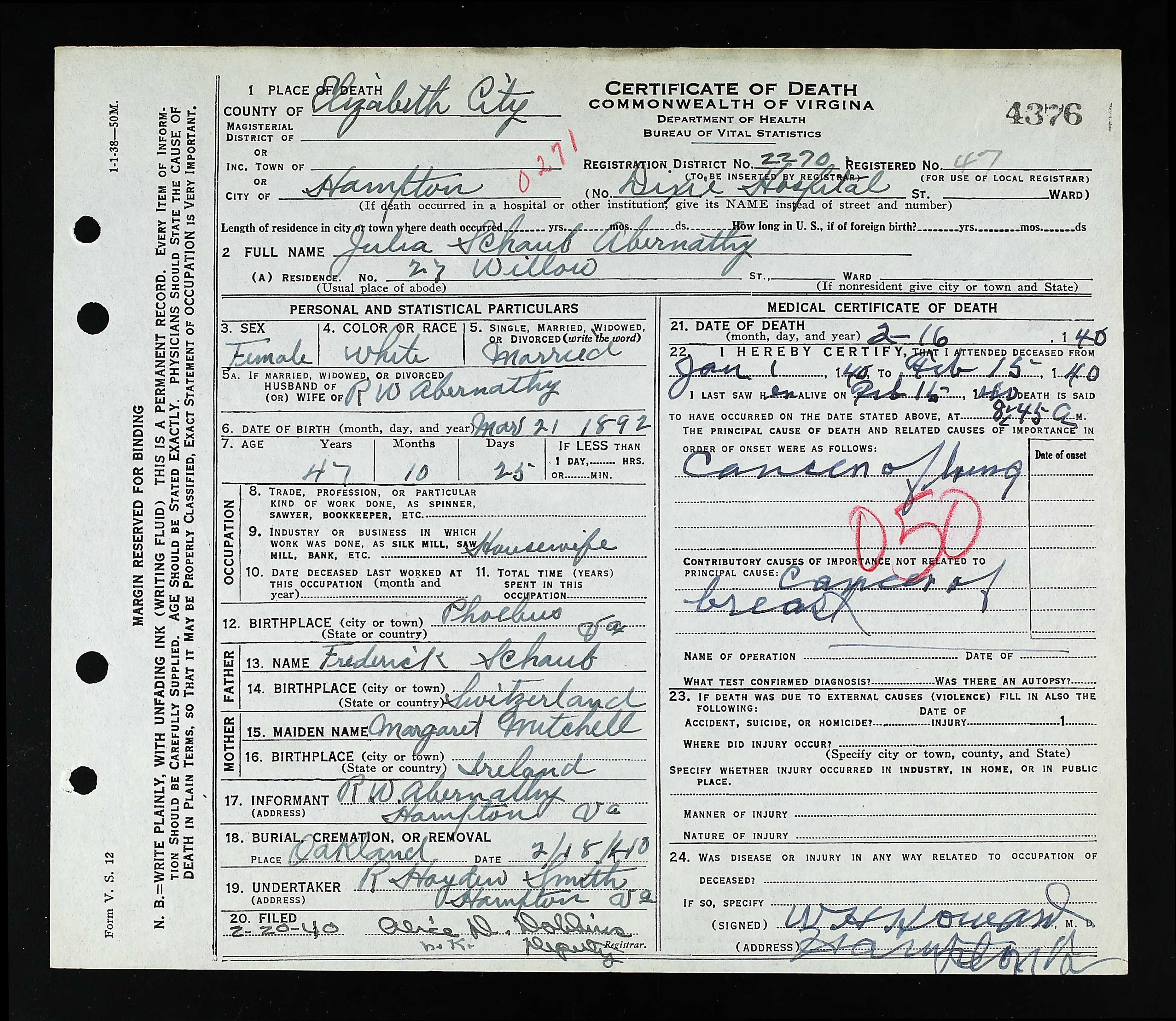 | Death | 16 Feb 1940 | Dixie Hospital, Hampton, Virginia, United States of America | ||