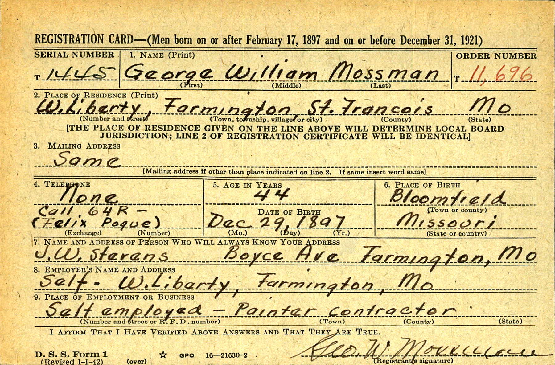 | Census | 1 Apr 1940 | Farmington, Saint Francois, St. Francois, Missouri, United States of America | George Mossman Household, 1940 Census | 3a | |||||||||||||||||||||||||||||||||||||||||||||||||||||||||||||||||||||||||||||||||||||||||||||||||||||||||||||||||||||||||||||||||||||||||||||||||||||||||||||||||||||||||||||