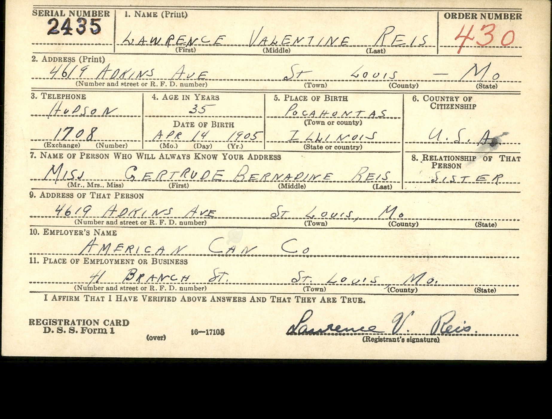 | Draft Registration | 16 Oct 1940 | St. Louis, Missouri, United States of America | ||