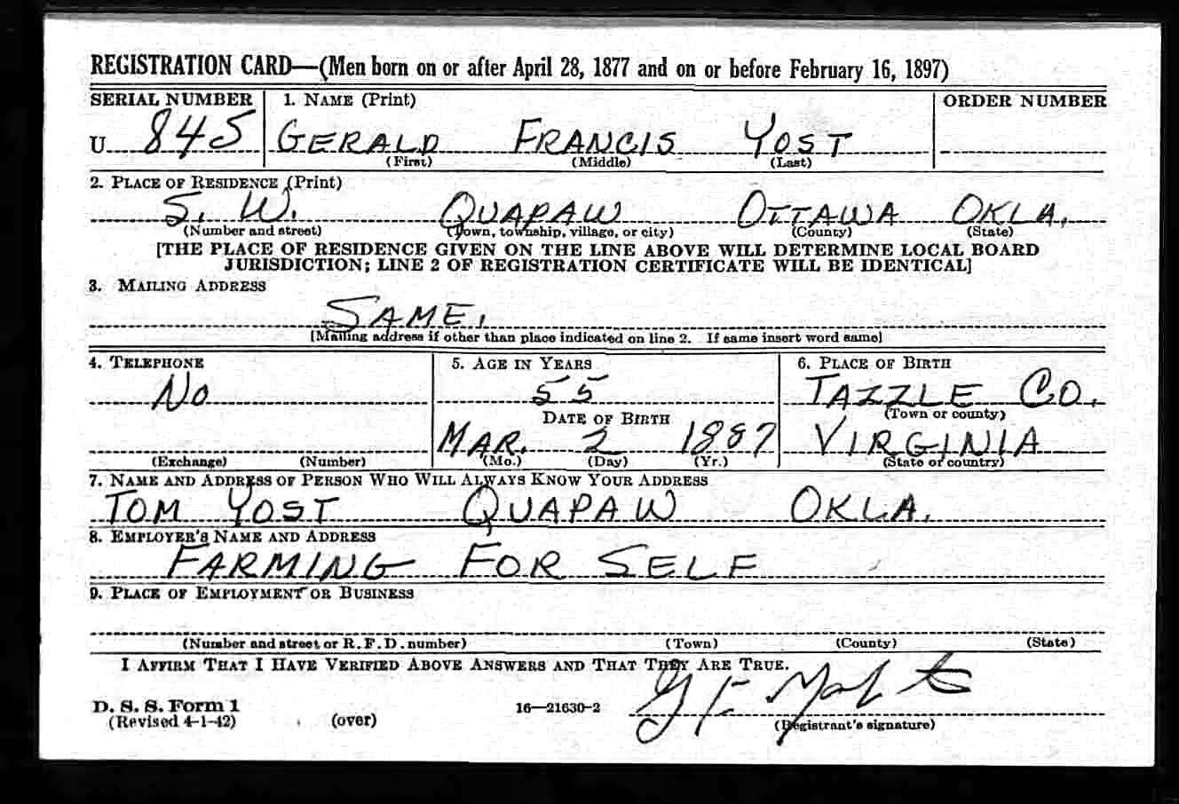 | Draft Registration | about 1942 | Quapaw, Ottawa, Oklahoma, United States of America | ||||||||||||||||||||||||||||||||||||||||||||||||||||||||||||||||||||||||||||||||||||||||||||||||||||||||||||||||||||||||||||||||||||||||||||||||||||||