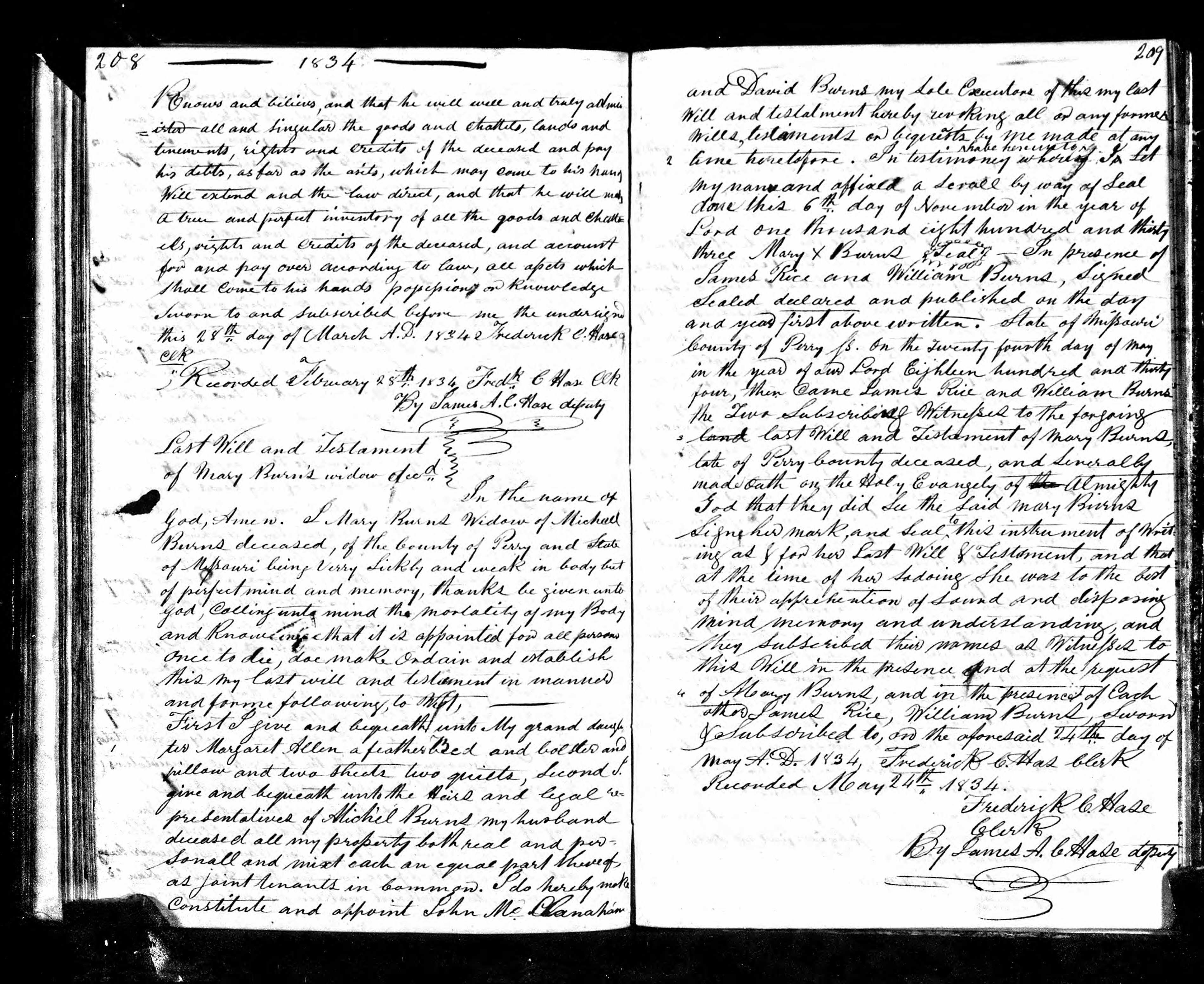 | Probate | 24 May 1834 | Perry, Missouri, United States of America | ||